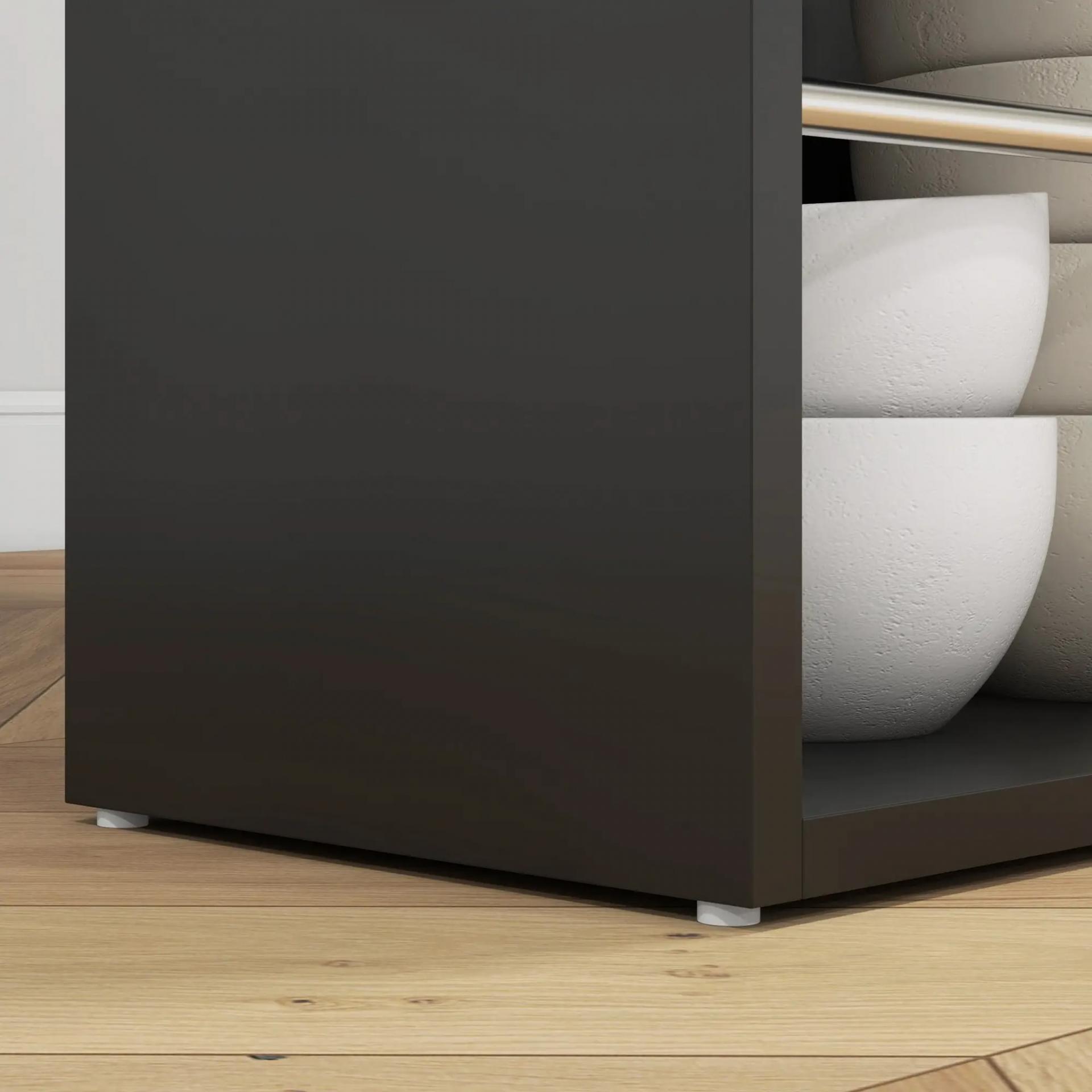 MEDIDAS TOTALES: 112x57x106 cm (LxANxAL). Medidas del estante: 50x16,5x33 cm (LxANxAL). Peso máximo soportado: 50 kg (total), 5 kg (cada estante)