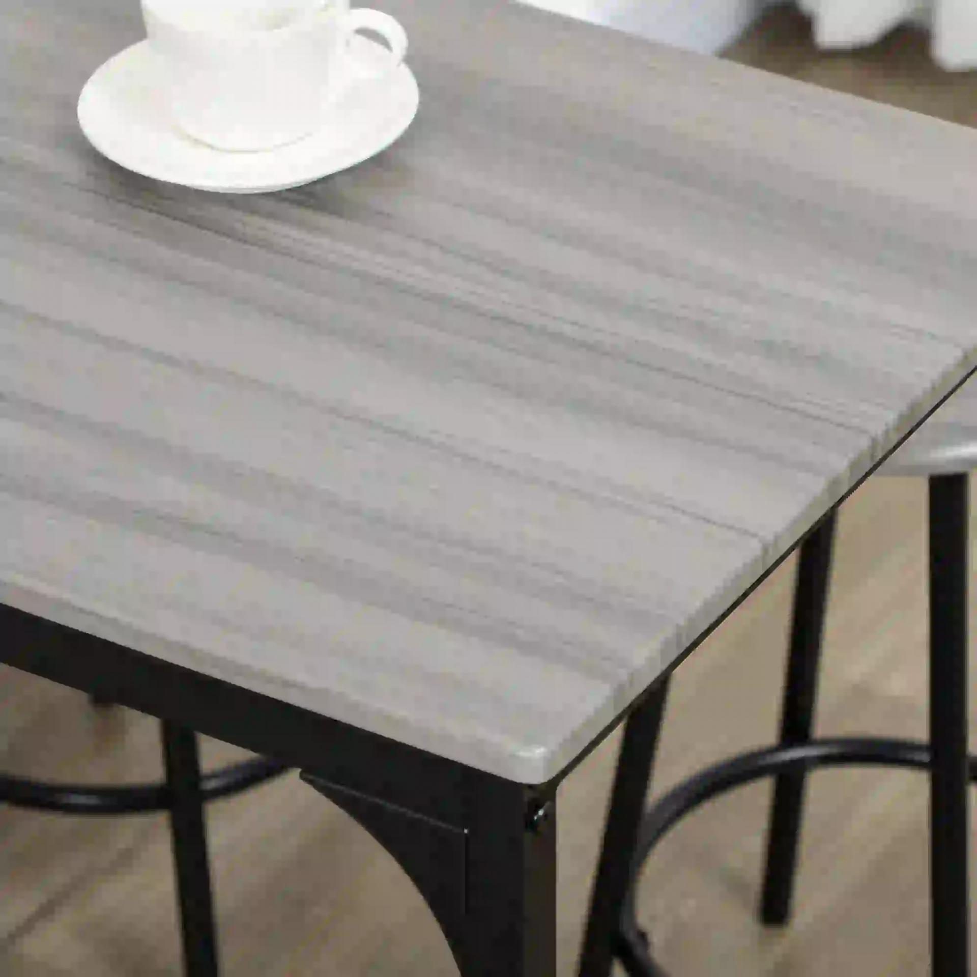 - RESISTENTE Y ESTABLE: Set de mesa alta de cocina con taburetes con estructura de metal en color negro y asientos de los taburetes y encimera de la mesa en MDF de color grisáceo simulando las vetas de madera