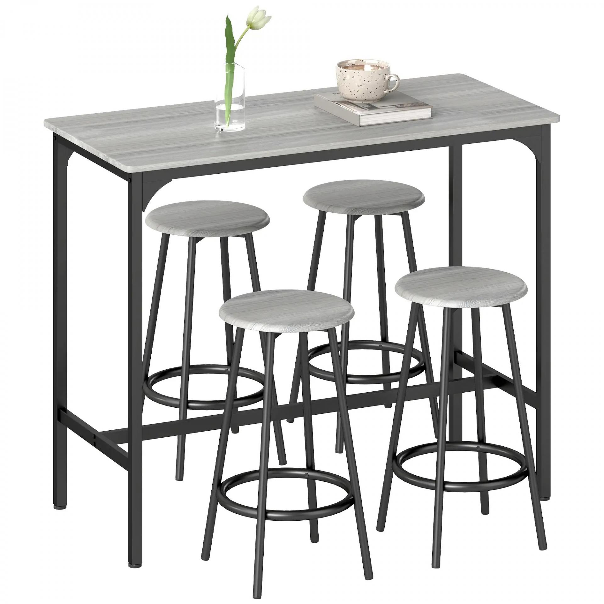 Set de Mesa de Bar y 4 Taburetes Estilo Industrial Marco de Metal para Cocina Salón Gris y Negro