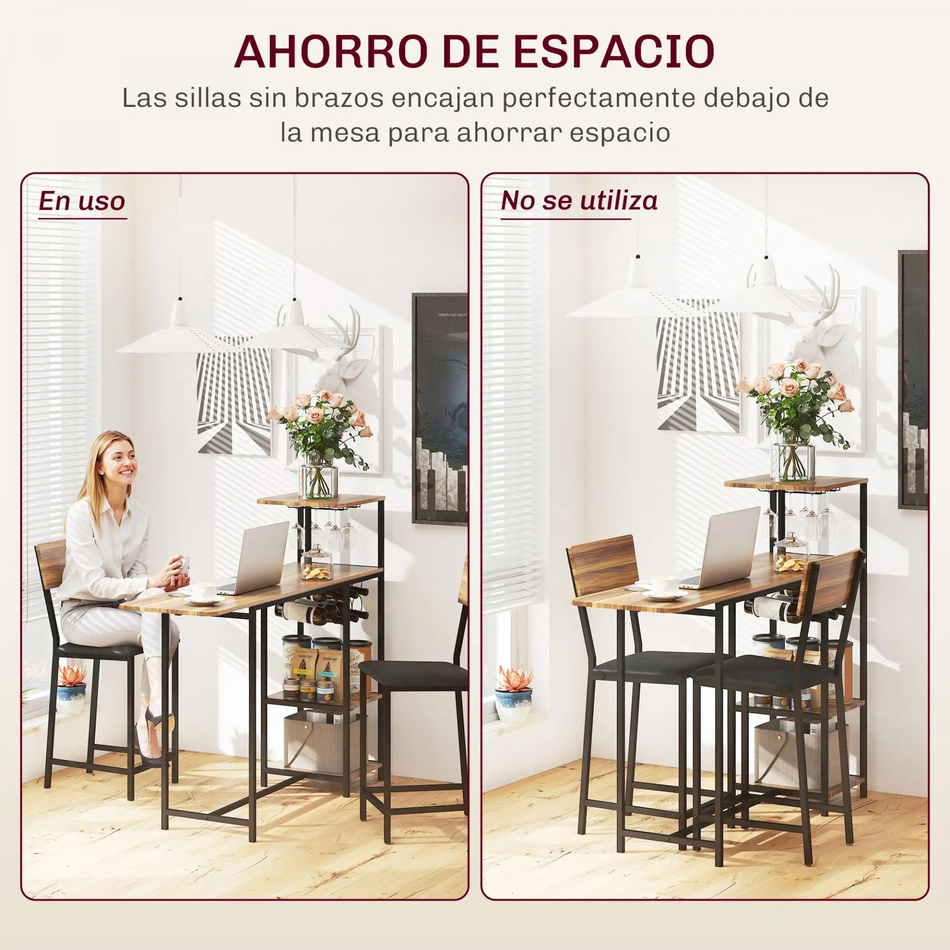 - ESTILO INDUSTRIAL Y PRÁCTICO: Con acabado en madera y estructura metálica negra, este conjunto de mesa y taburetes de bar tiene un diseño industrial. Los taburetes se guardan debajo de la mesa cuando no se usan, maximizando el espacio