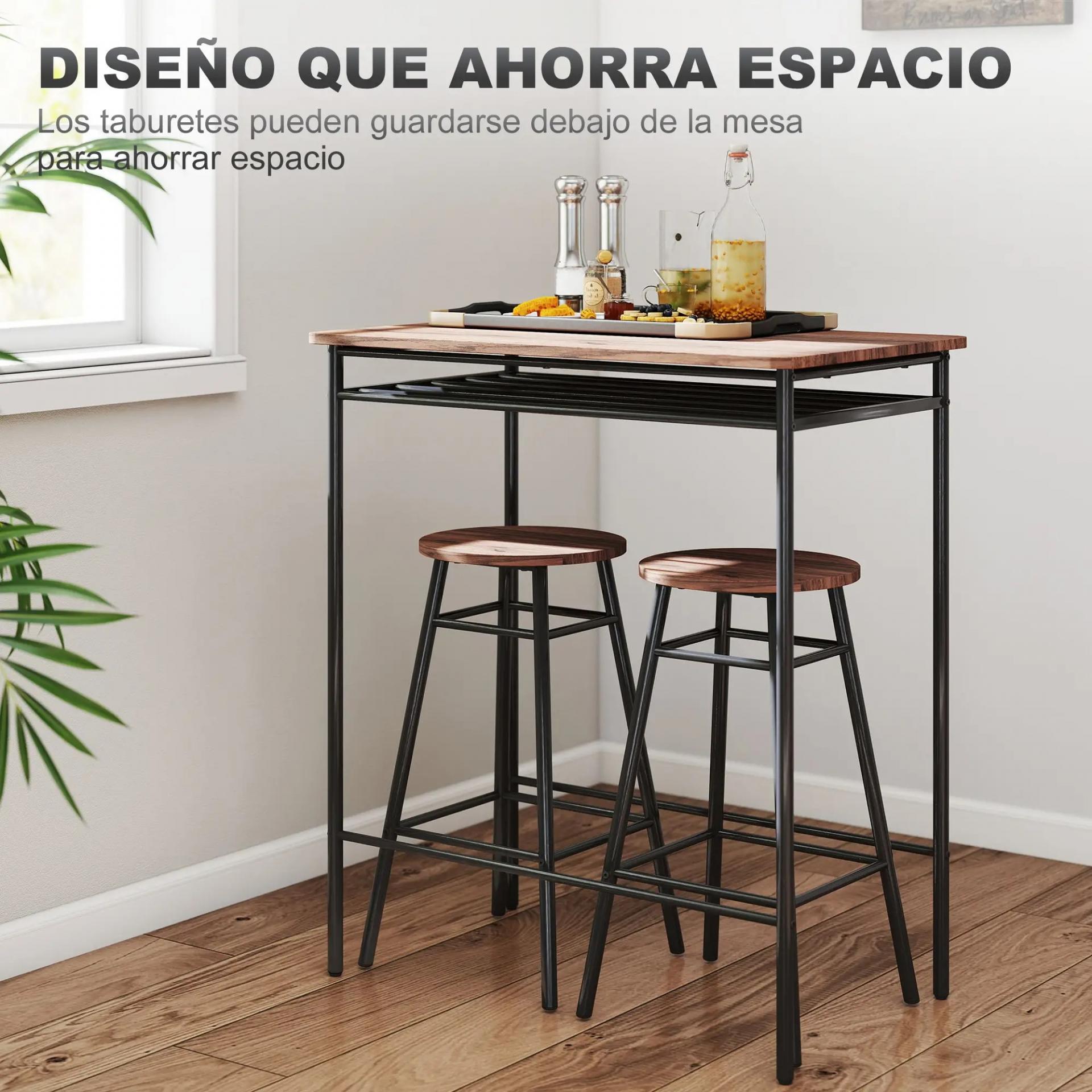 Mesa Alta de Cocina con 2 Taburetes Industrial Estante Abierto Reposapiés Ahorro de Espacio para Espacios Reducidos