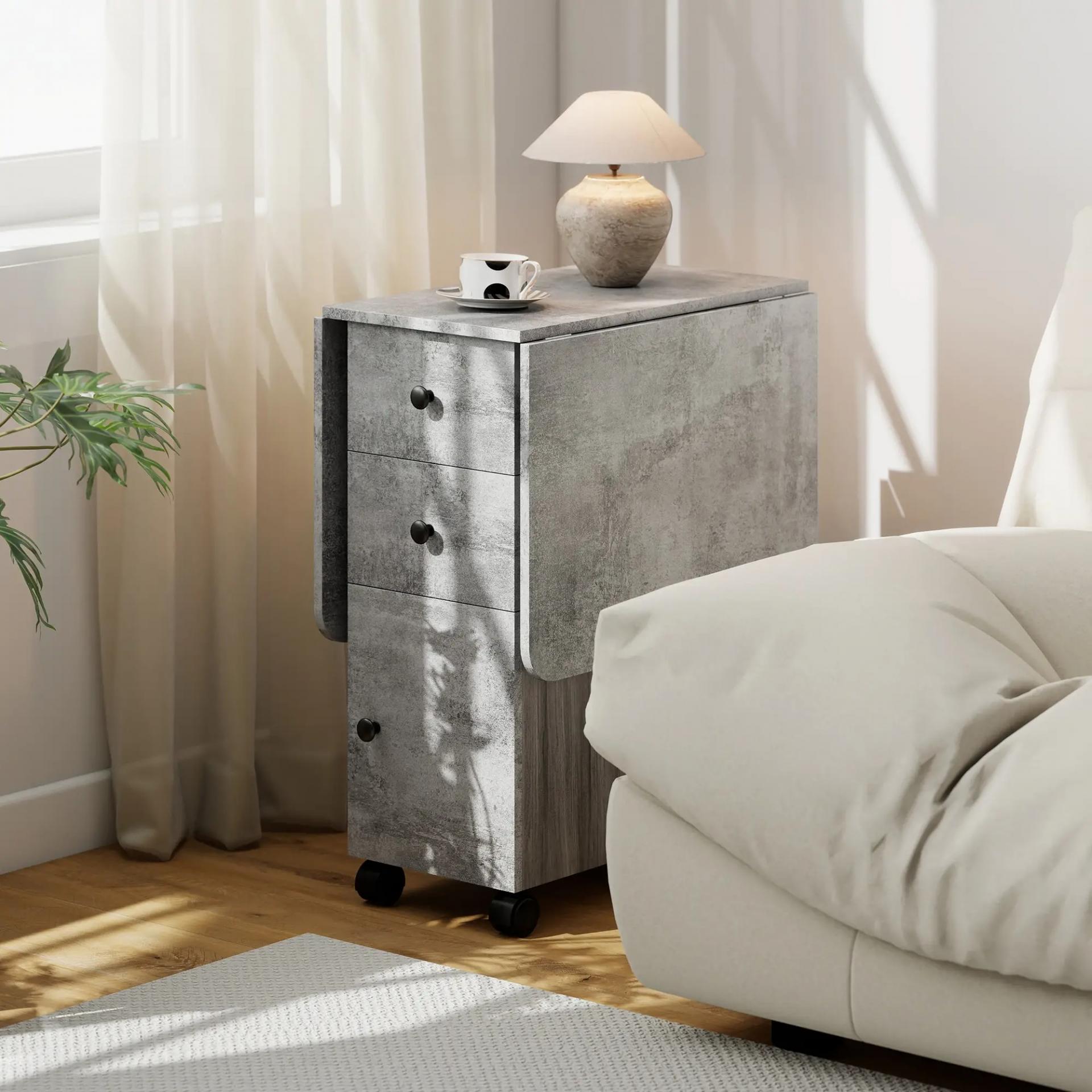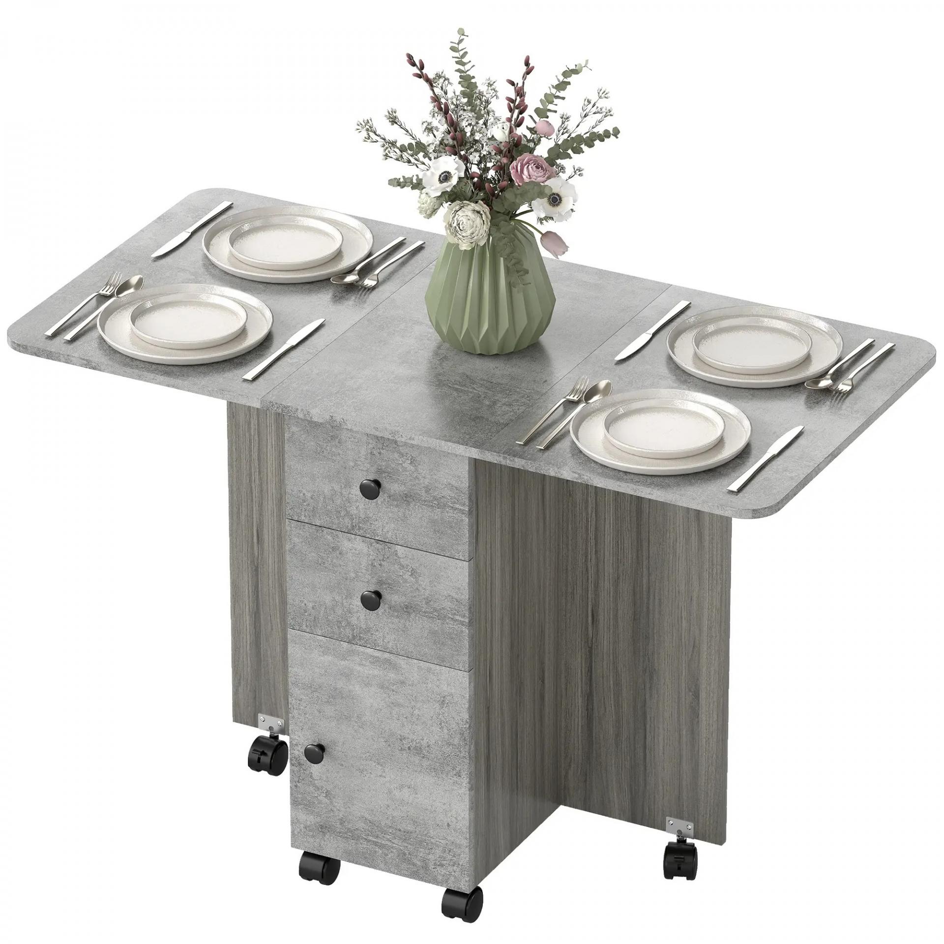 Mesa Plegable de Comedor con Ruedas Alas Abatibles 2 Cajones y Armario Hasta 6 Personas 120x60x76,5 cm Gris