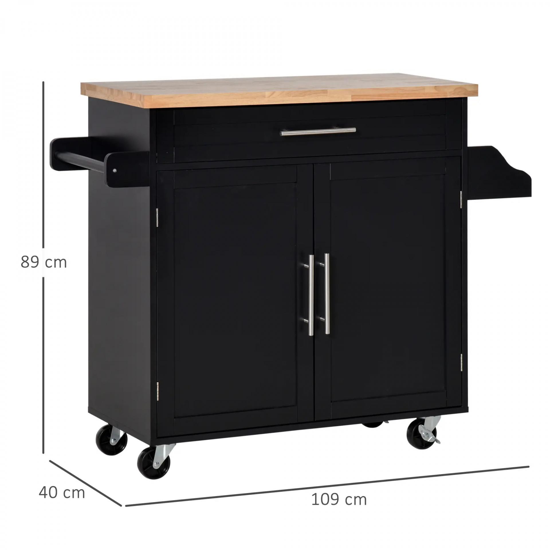 Carrito de Cocina con Armario con Puertas y Estante Interior Ajustable Cajón Barra y Especiero Móvil Aparador Auxiliar con Ruedas para Comedor 109x40x89 cm Negro