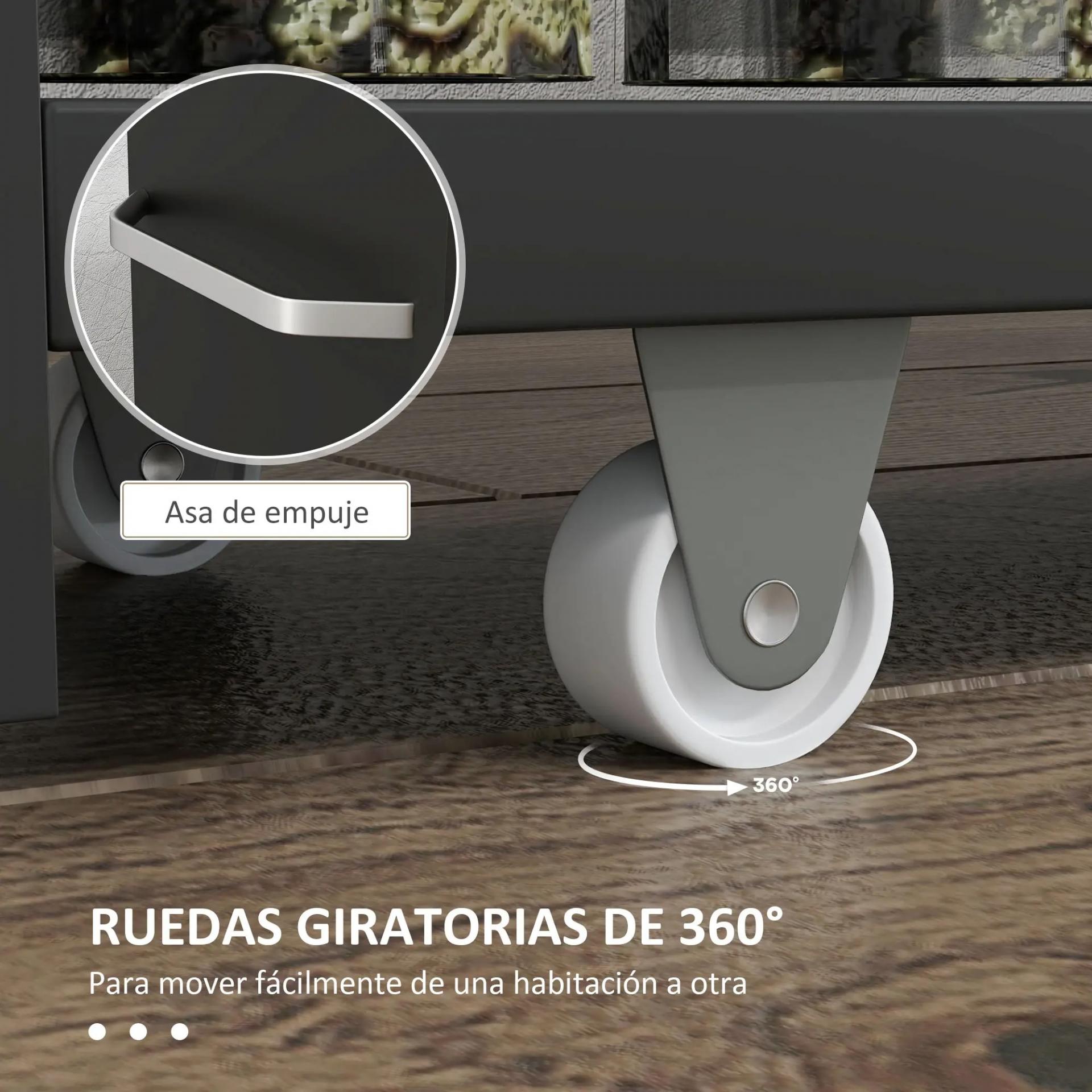 - CON RUEDAS Y MANIJA: Este carrito de cocina cuenta con 4 ruedas direccionales en la parte inferior y una manija en el frontal, que te facilita empujarlo y sacarlo de los espacios estrechos donde lo coloques, por ejemplo, en el costado del inodoro