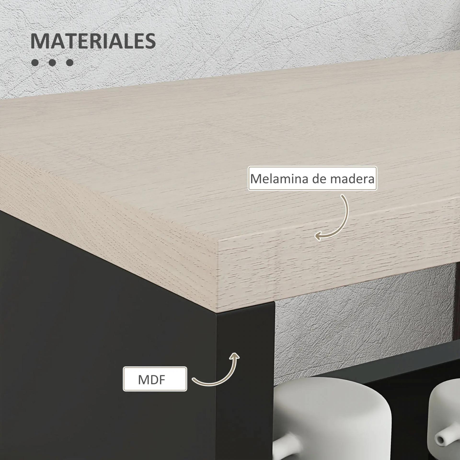 - RESISTENTE: Fabricado en tablero de melamina MDF de alta calidad, con acabado en dos tonos (negro y madera natural). Su superficie es duradera y fácil de limpiar, ideal para uso diario en cualquier estancia
