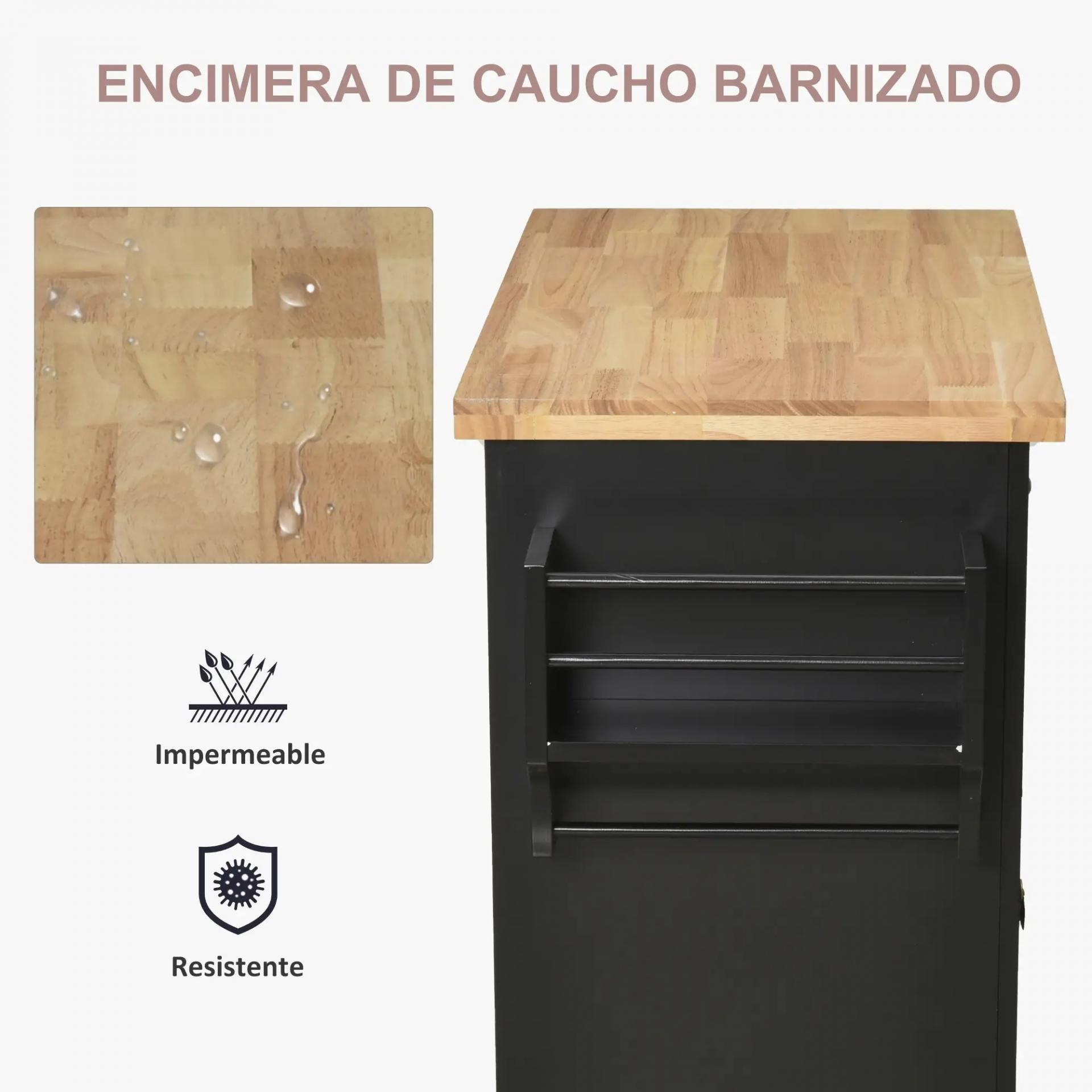 - ENCIMERA ADICIONAL: La superficie de madera de caucho con acabado satinado ofrece espacio extra para preparar alimentos sin ocupar tanto como una mesa completa, siendo una solución perfecta para cocinas pequeñas o con poco espacio