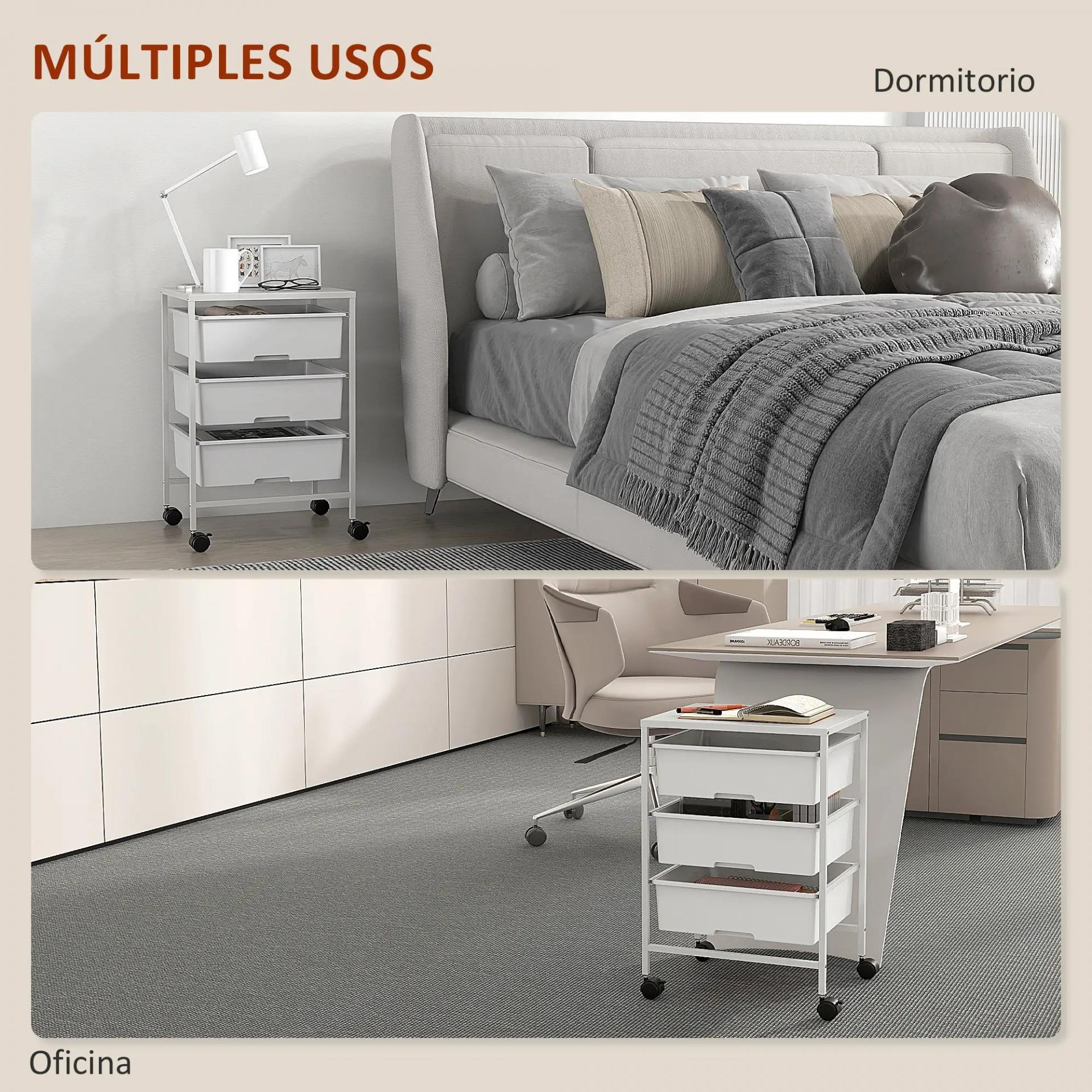 AMPLIO ESPACIO DE ALMACENAMIENTO: ¿Buscas dónde guardar tus cosas? Este carrito auxiliar con ruedas de HOMCOM ofrece tres cestas amplias para que puedas organizar suministros, accesorios y más, manteniendo tu hogar limpio, ordenado y siempre a mano