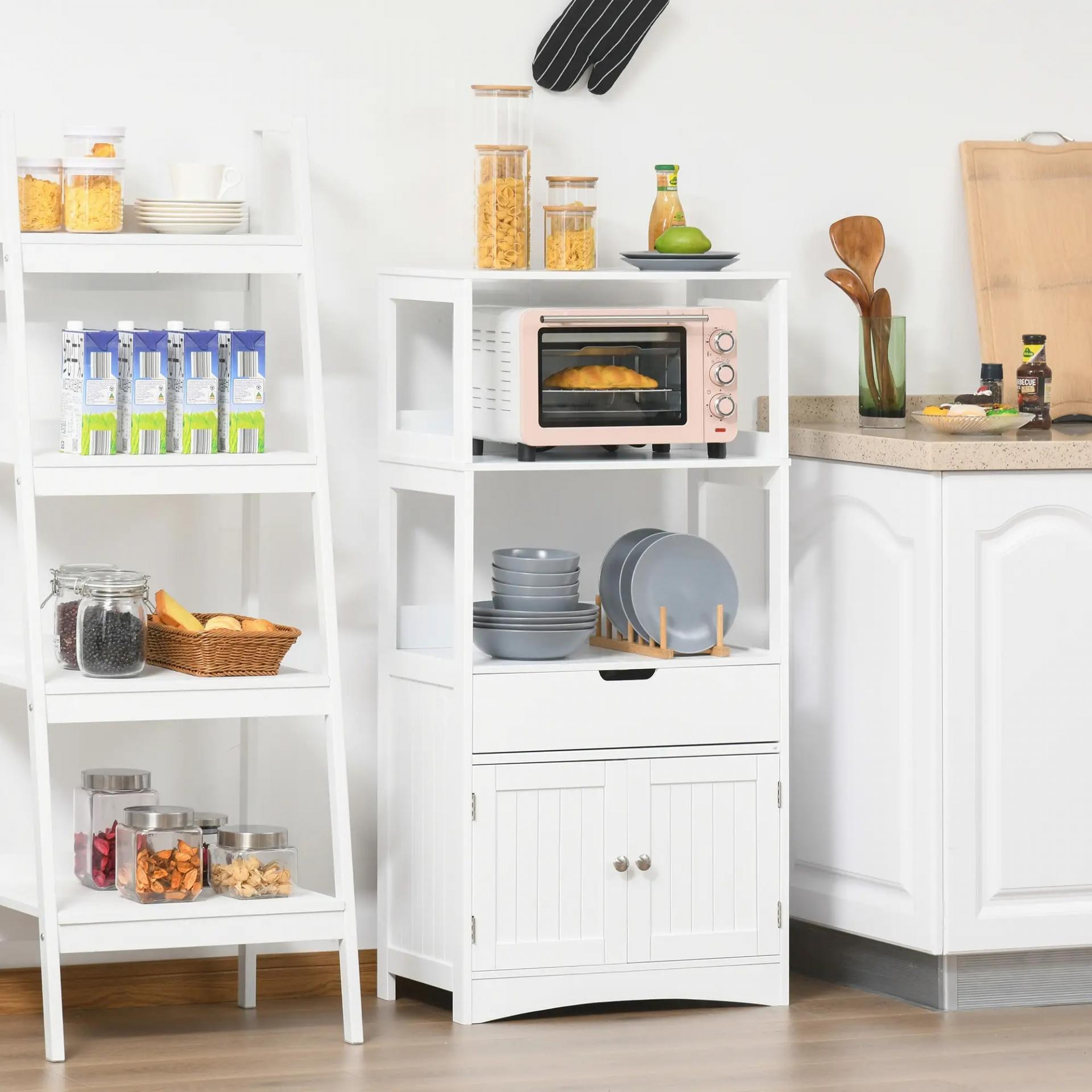 Armario de Baño con 3 Estantes Cajón y 2 Puertas Mueble de Almacenamiento de Suelo Moderno para Cocina Dormitorio Salón 60x33x122,5 cm Blanco