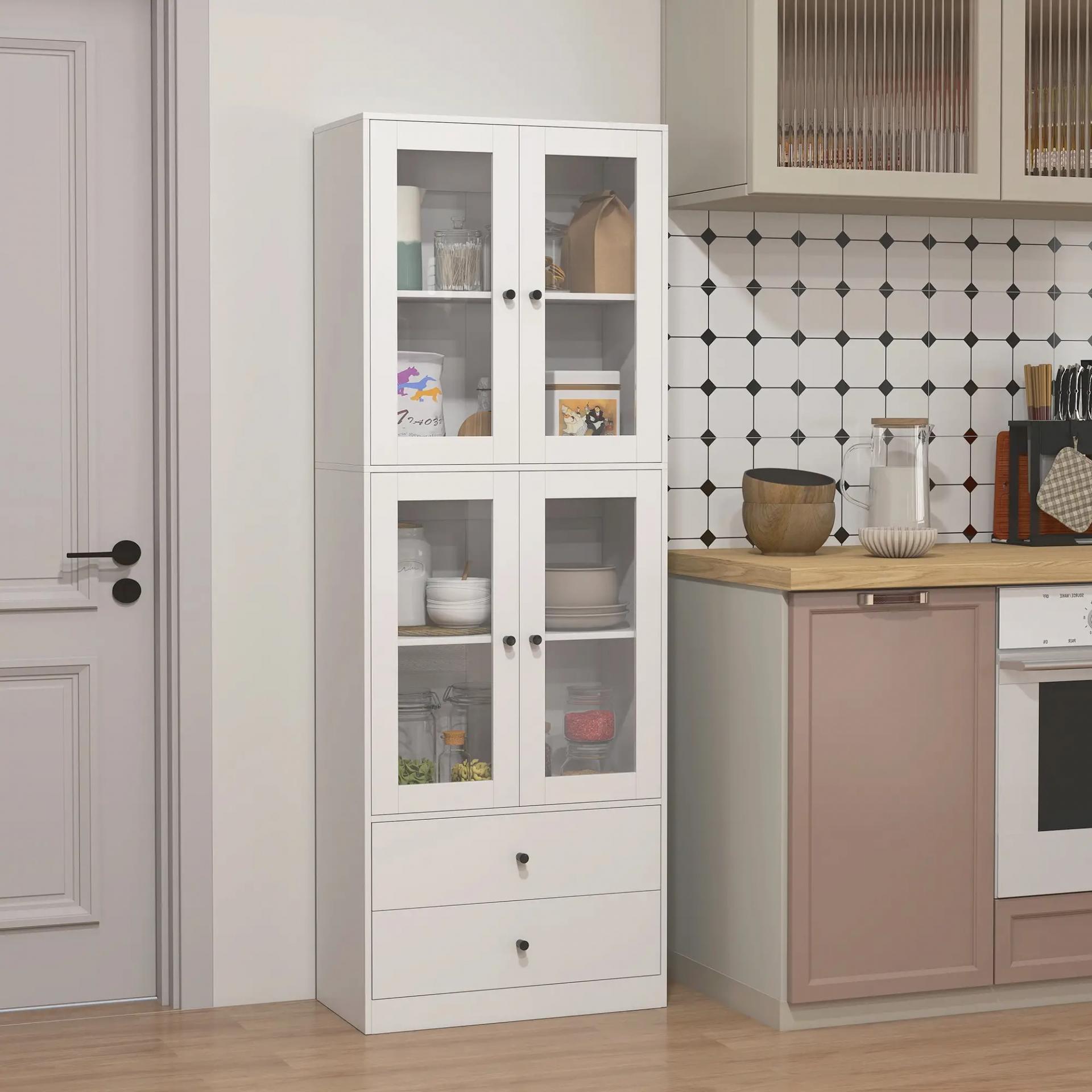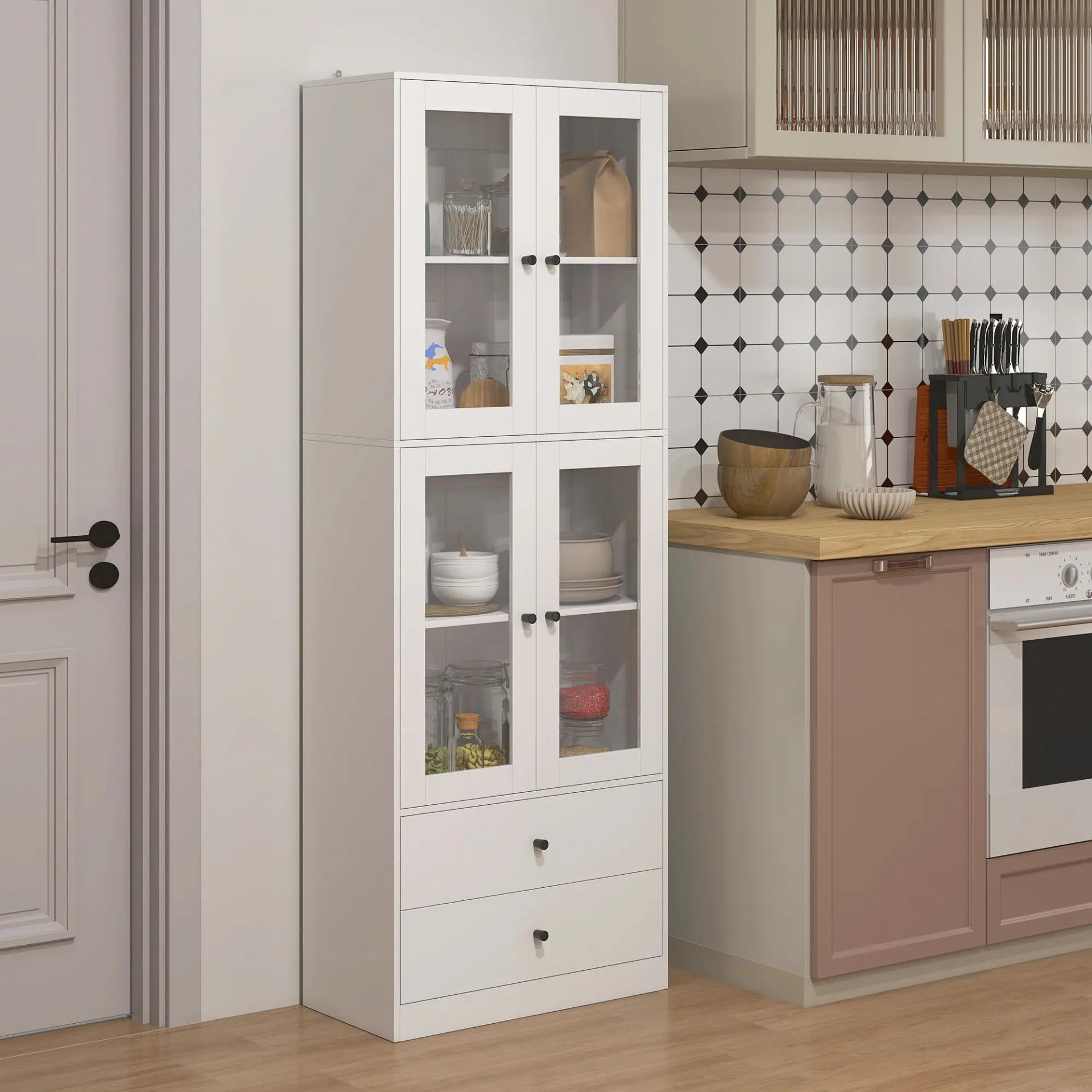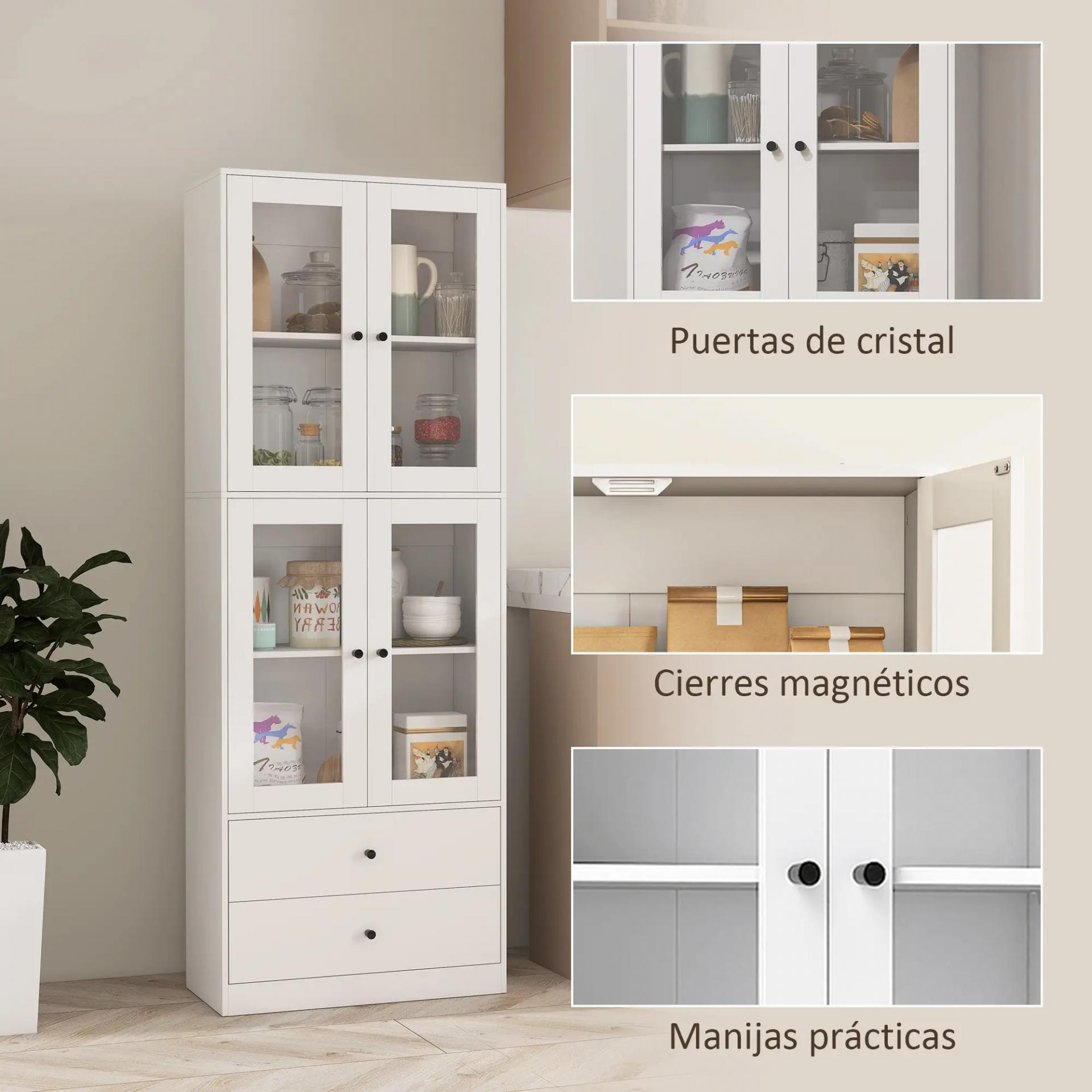 Alacena de Cocina Alta con 4 Puertas de Vidrio 2 Cajones Estantes Ajustables 59x30x170 cm Blanco