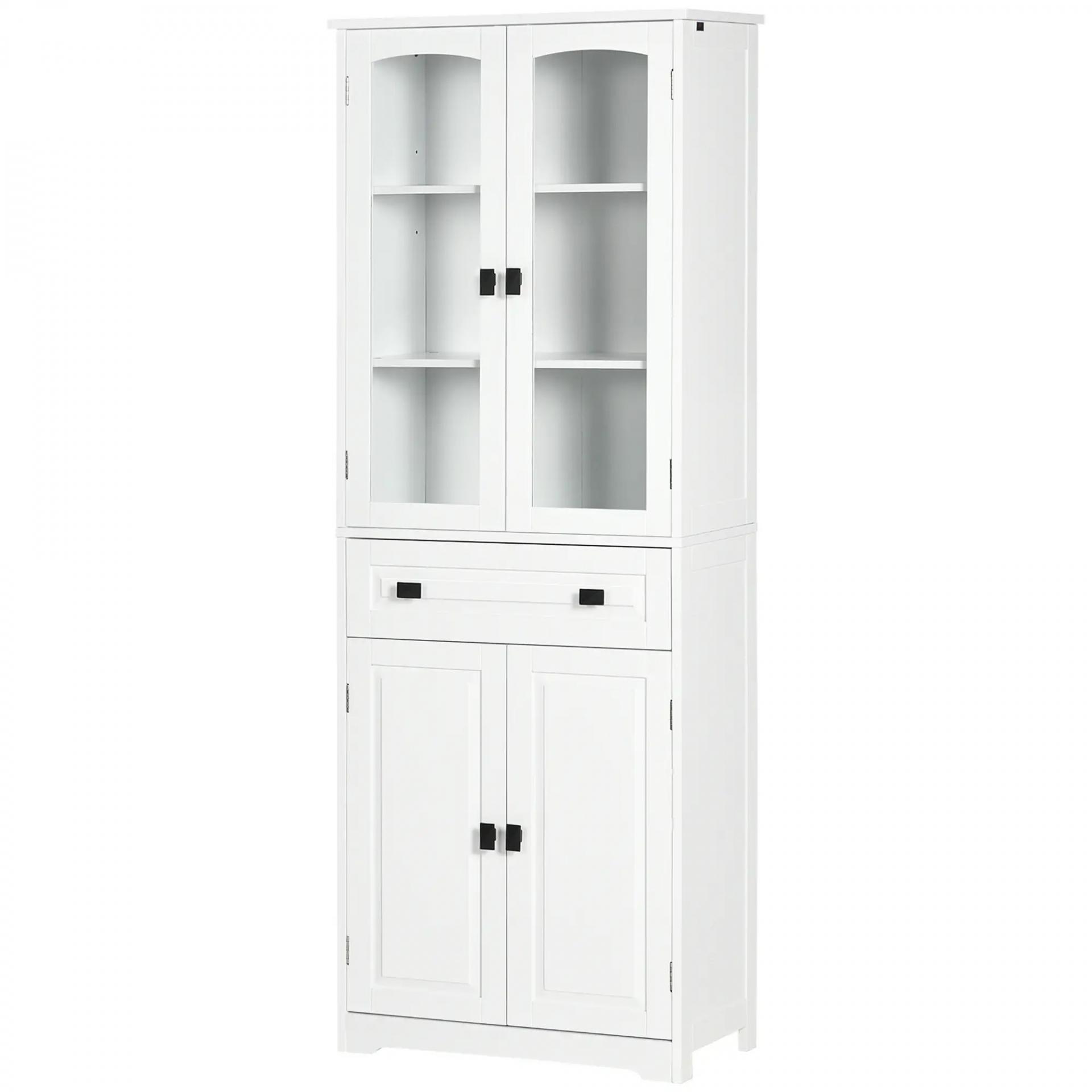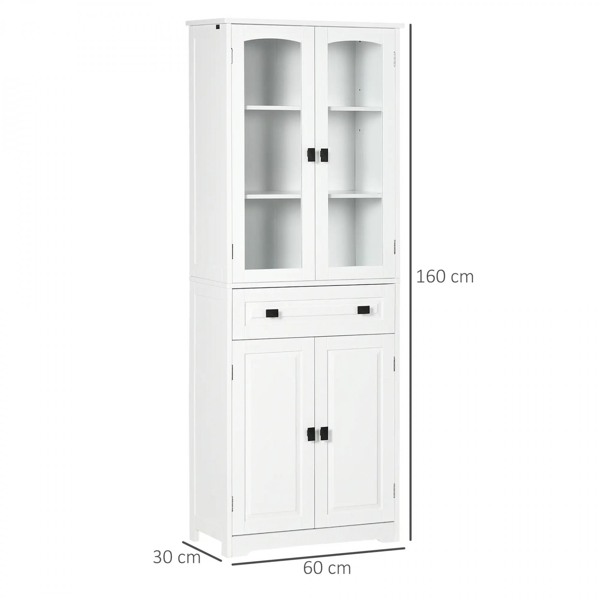 Alacena de Cocina con 2 Puertas de Vidrio 2 Estantes Ajustables y Cajón para Salón Comedor 60x30x160 cm Blanco