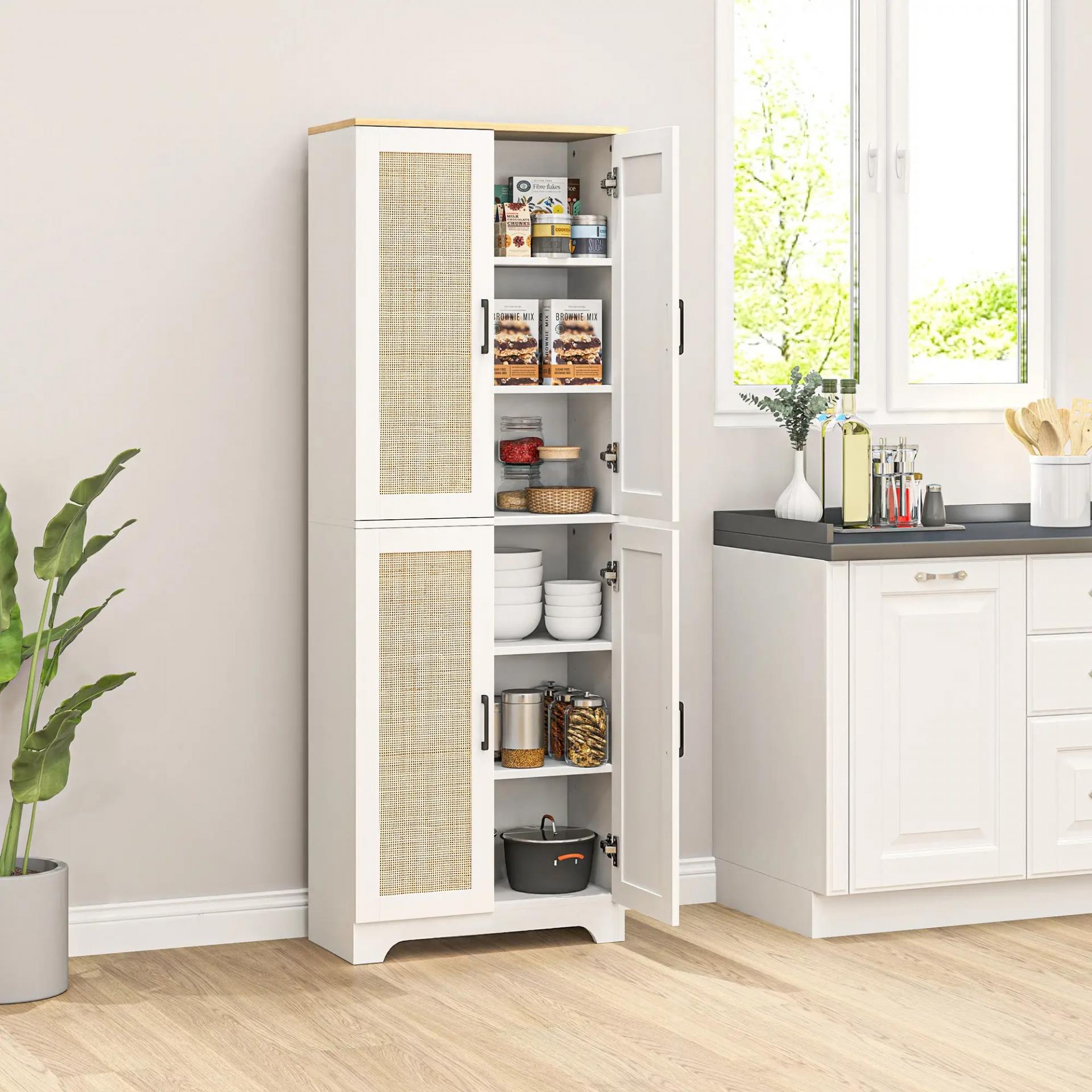 ACTUALIZA TU ADESPENSA: Este aparador de cocina de 6 niveles proporciona un amplio espacio para organizar platos, ollas, libros de recetas y alimentos secos. Gracias a sus cuatro puertas, mantendrás todo protegido del polvo y a mano
