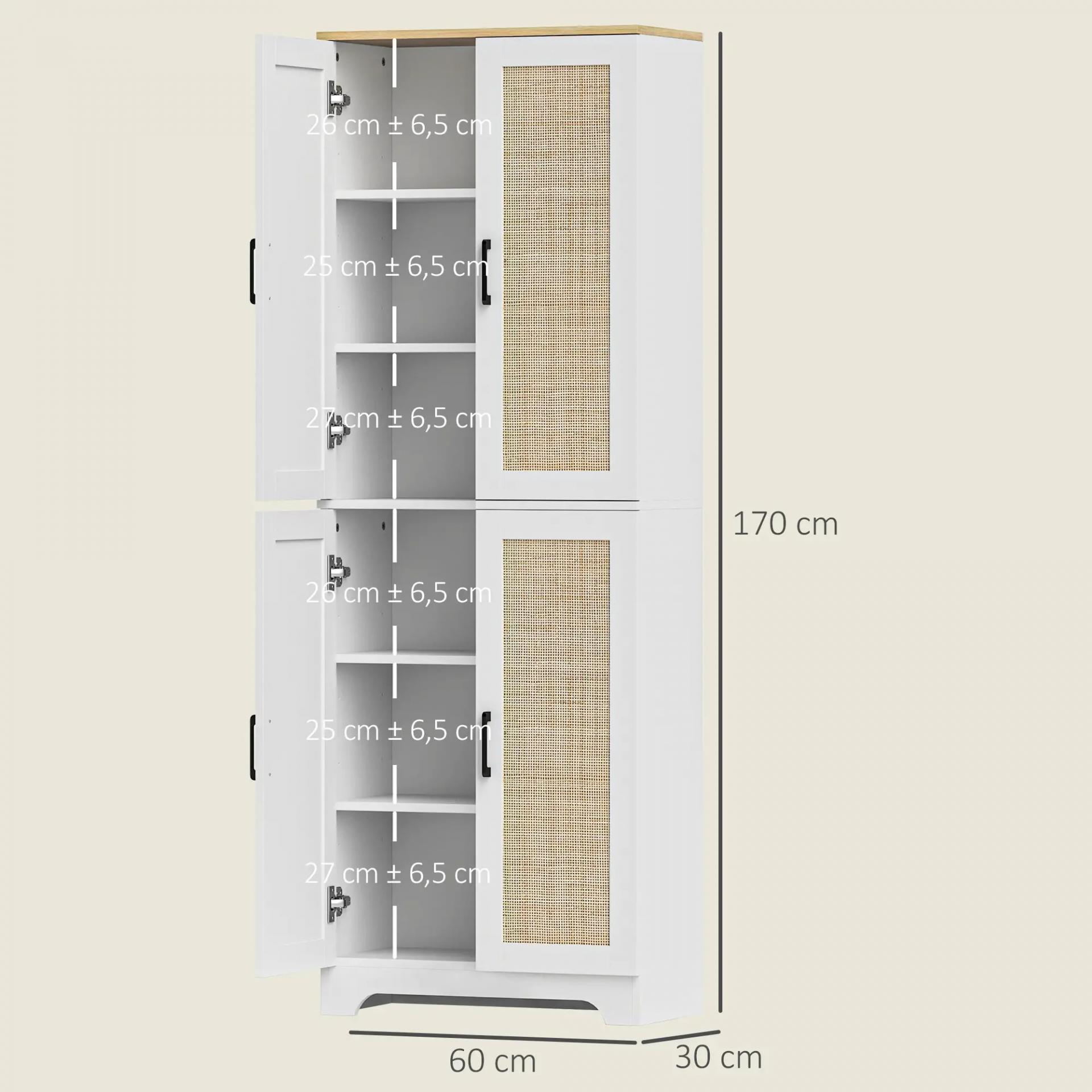 Alacena de Cocina con Estantes Ajustables Puertas de Ratán y Sistema Anti-vuelco 60x30x170 cm Blanco
