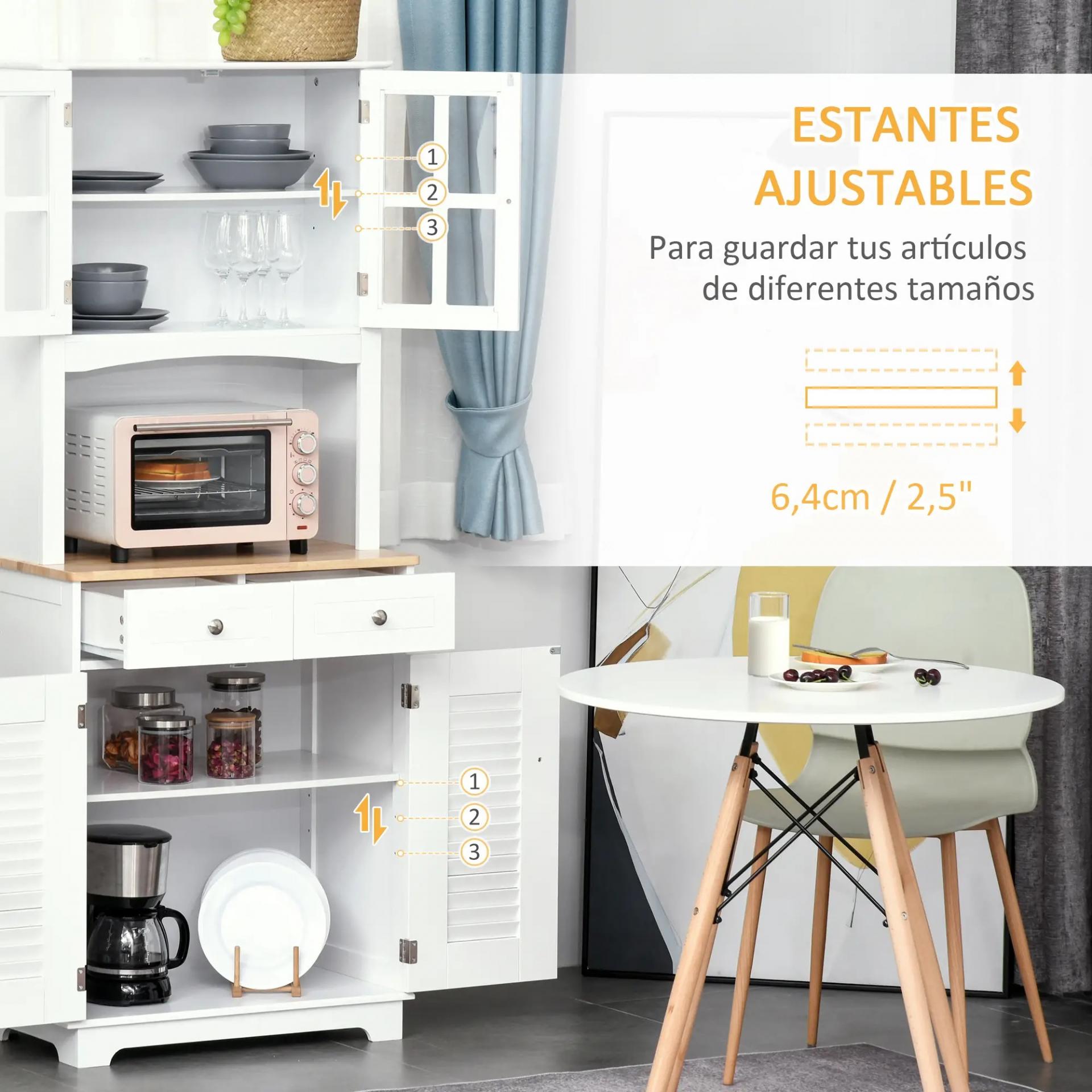 Armario de Cocina Aparador de Comedor con 2 Cajones Estantes Ajustables y Antivuelco 68x39,5x170 cm Blanco