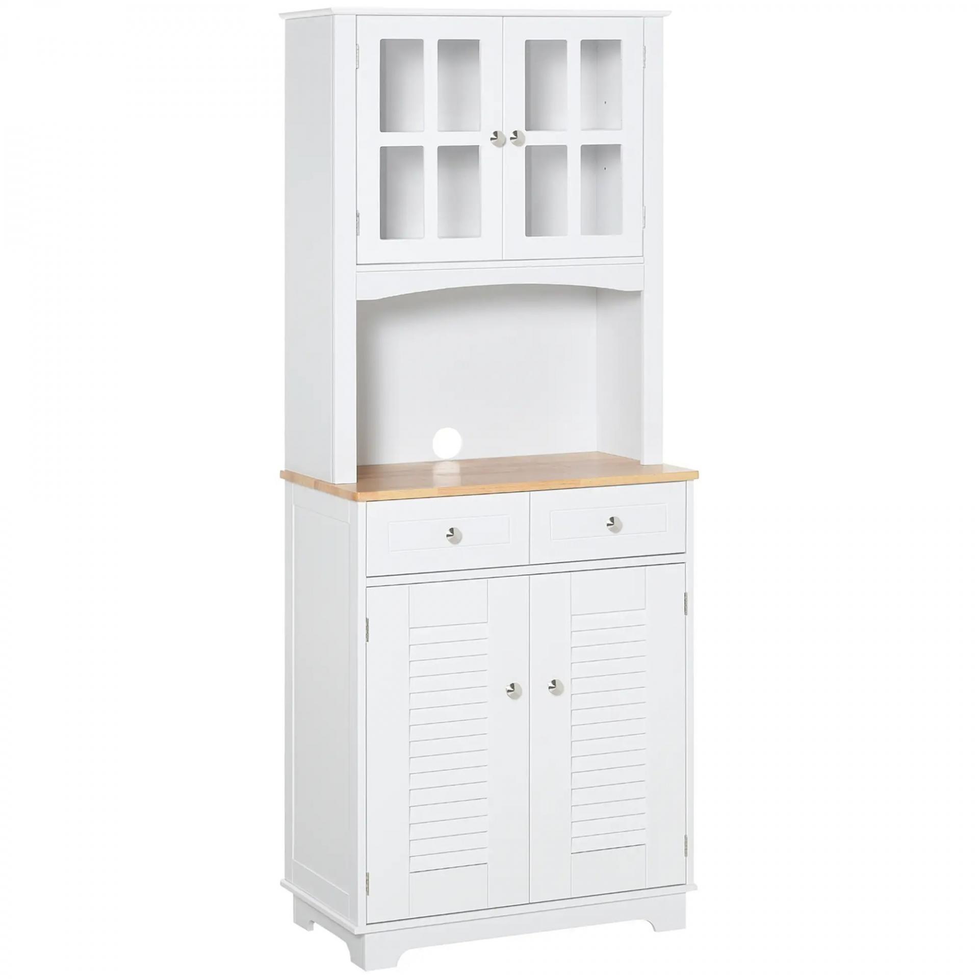 - RESISTENTE: Mueble de cocina hecho de melamina y MDF. La encimera de madera de caucho es fácil de limpiar y mantener. Y el dispositivo anti-vuelco proporciona mayor estabilidad y evita que el aparador se vuelque o tambalee