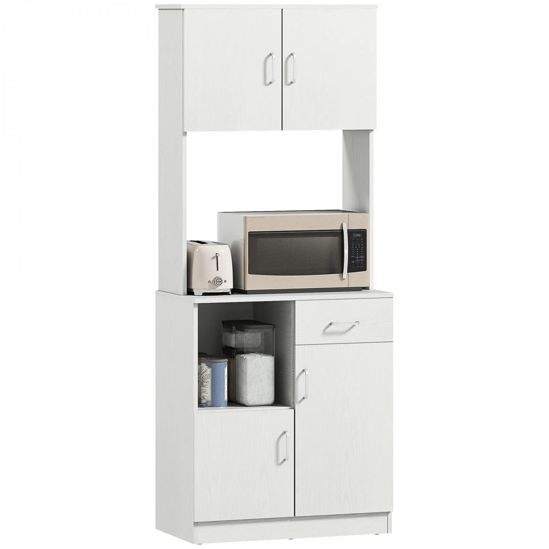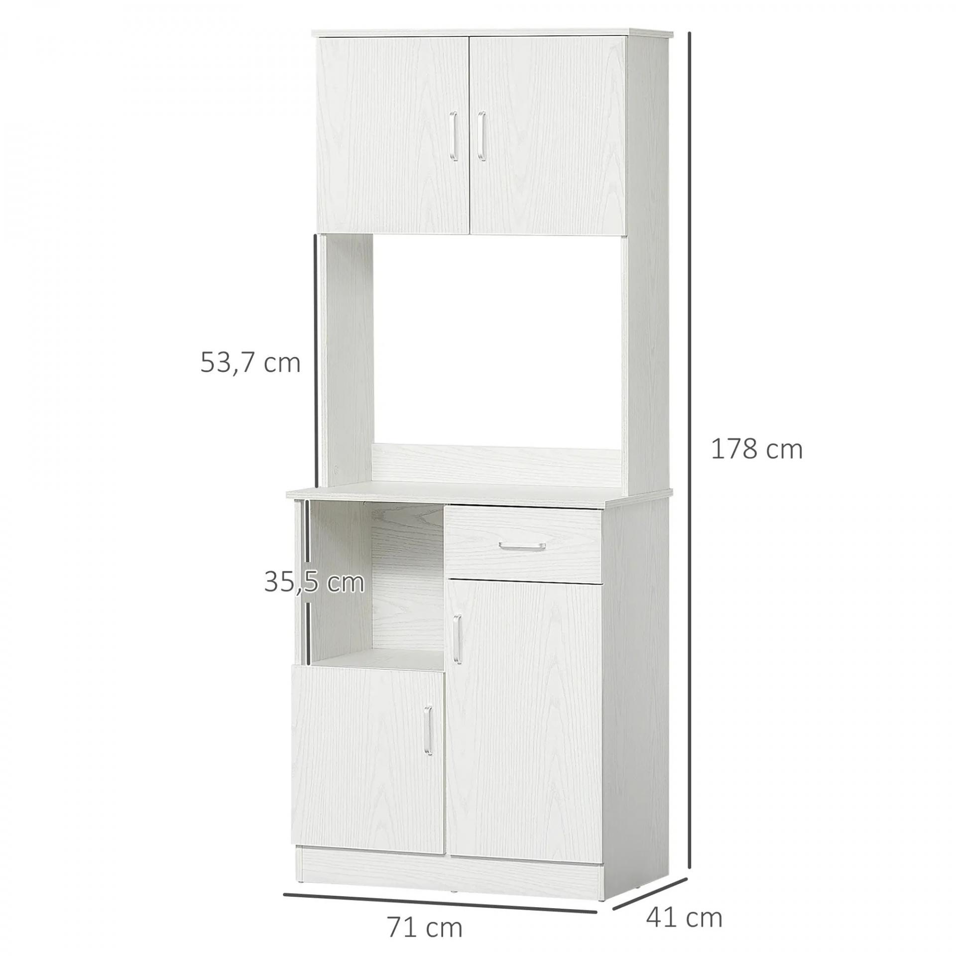Armario de Cocina con 1 Cajón Estante Ajustable y Estante Abierto Estilo Moderno Antivuelco 71x41x178 cm Blanco