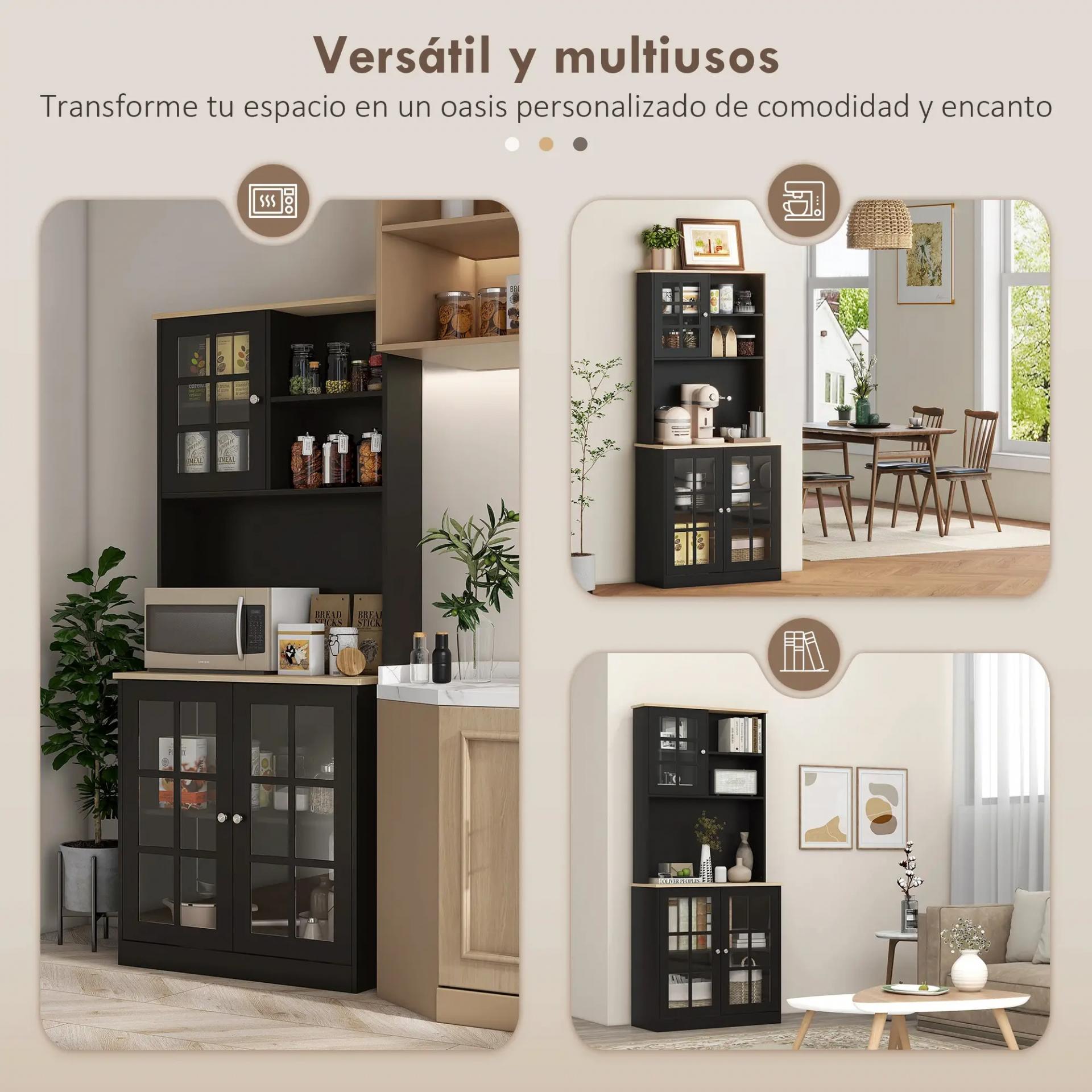 ALACENA CON PUERTAS DE VIDRIO: Esta alacena de cocina alta de HOMCOM incluye puertas de vidrio que protegen del polvo y permiten ver el contenido, ideal para guardar vajilla, pequeños electrodomésticos y mantener todo bien organizado y a la vista