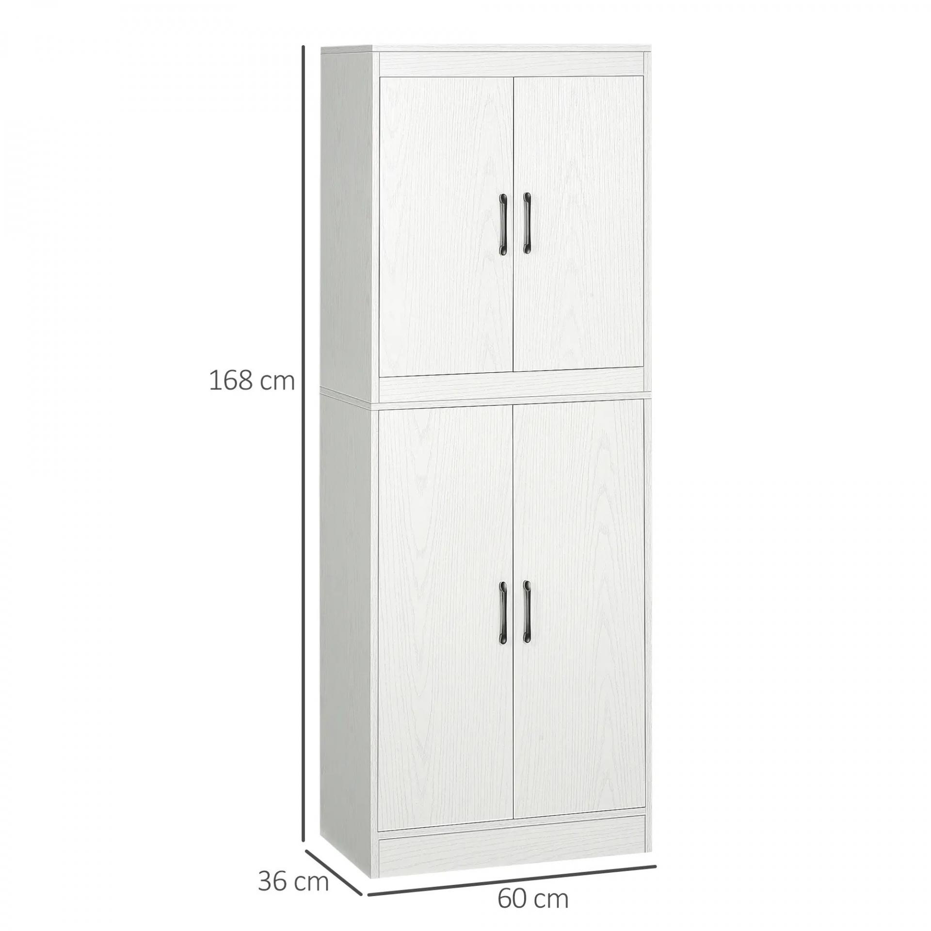 Alacena de Cocina Mueble Auxiliar con 4 Puertas y 5 Estantes Abiertos 60x36x168 cm Blanco