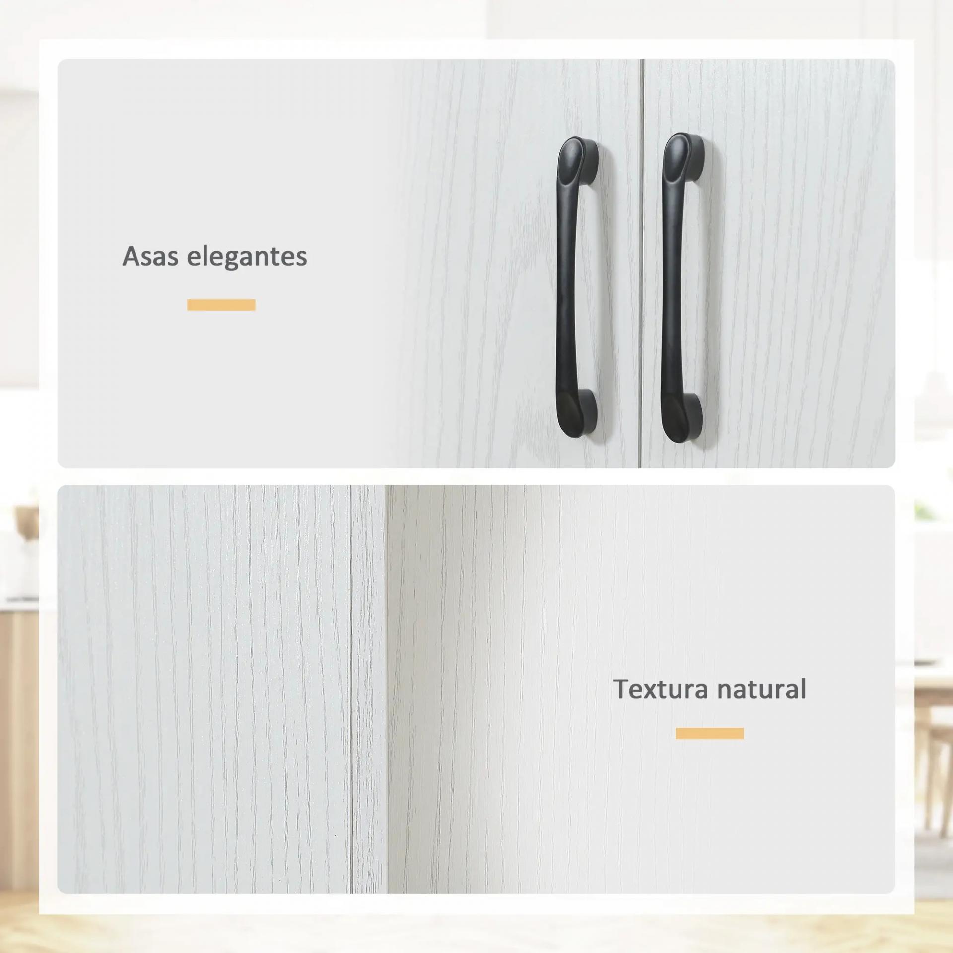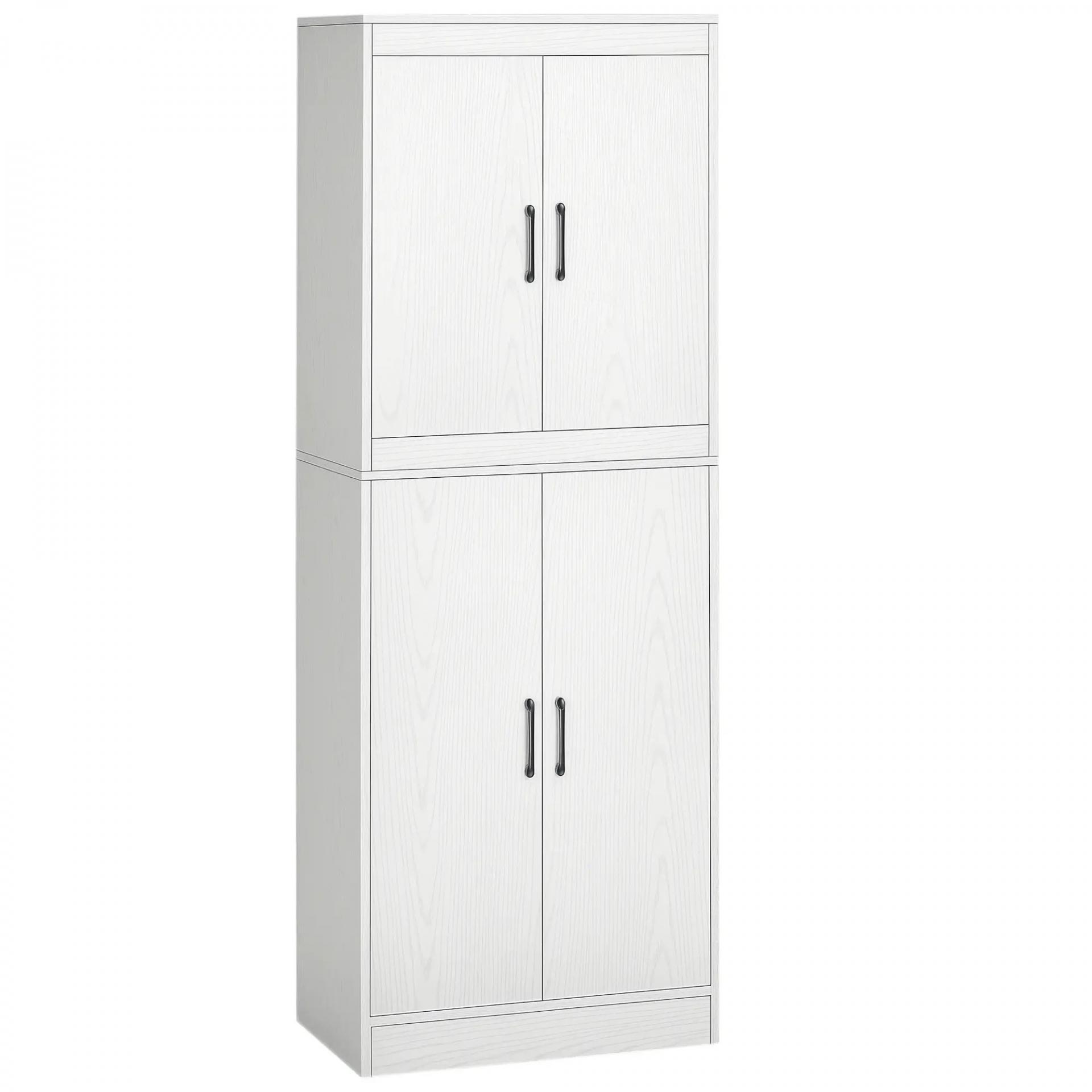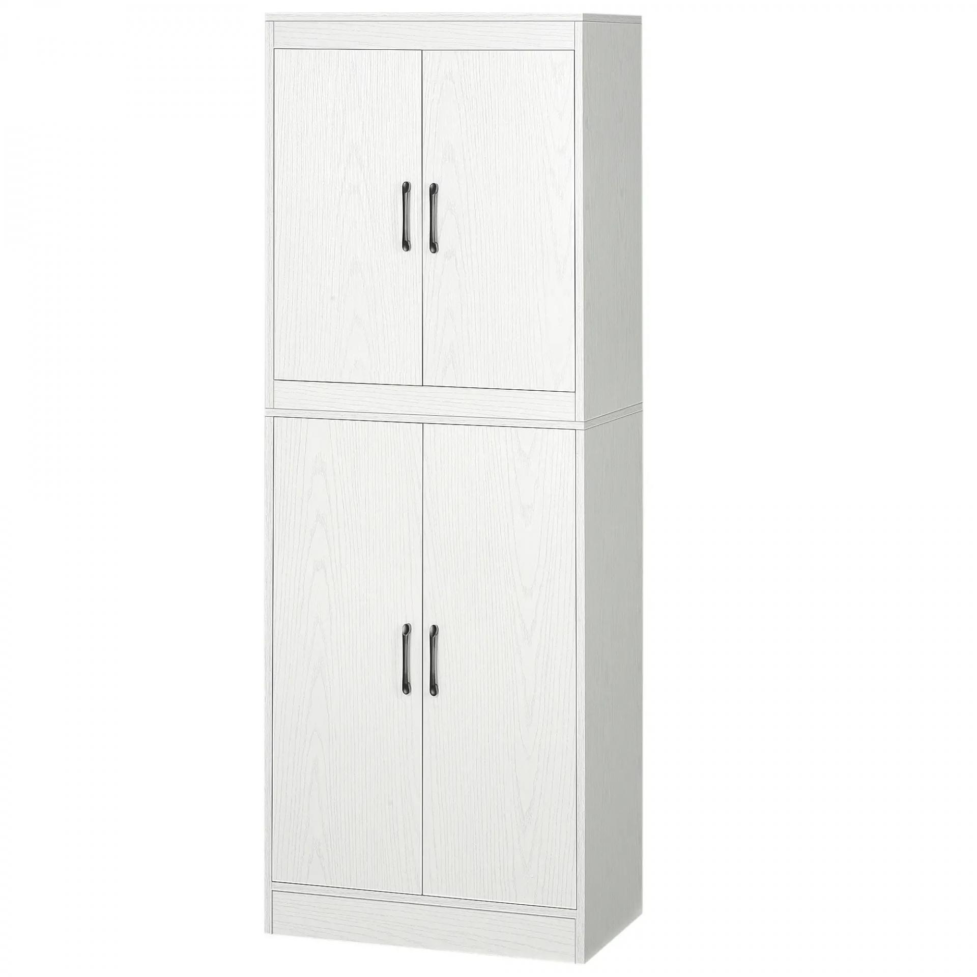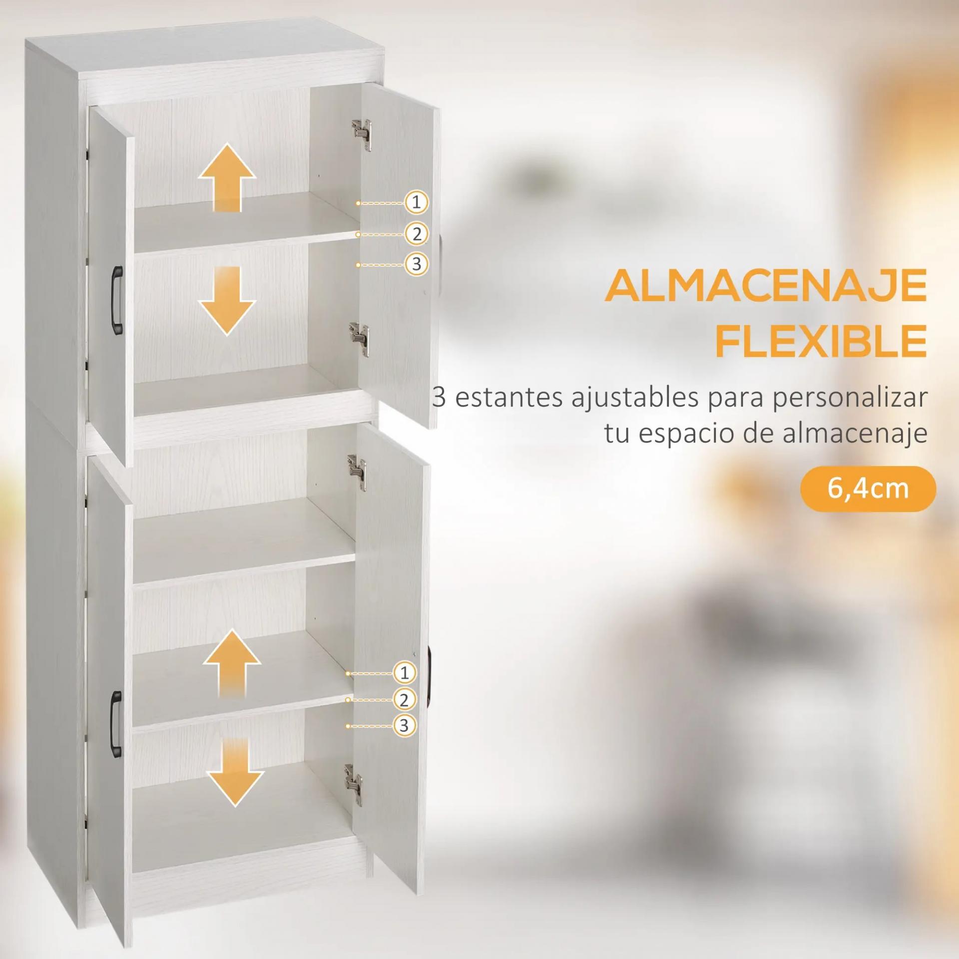 MUEBLE MODERNO Y ESPACIOSO: No te abrumes por falta de espacio. Este mueble despensa de HOMCOM con cuatro puertas te proporcionará todo el espacio de almacenamiento adicional que necesitas para ese nuevo juego de ollas y sartenes que has estado mirando, platos y más. Gracias a su diseño moderno y su color blanco, este mueble combinará fácilmente con la decoración de tu hogar
