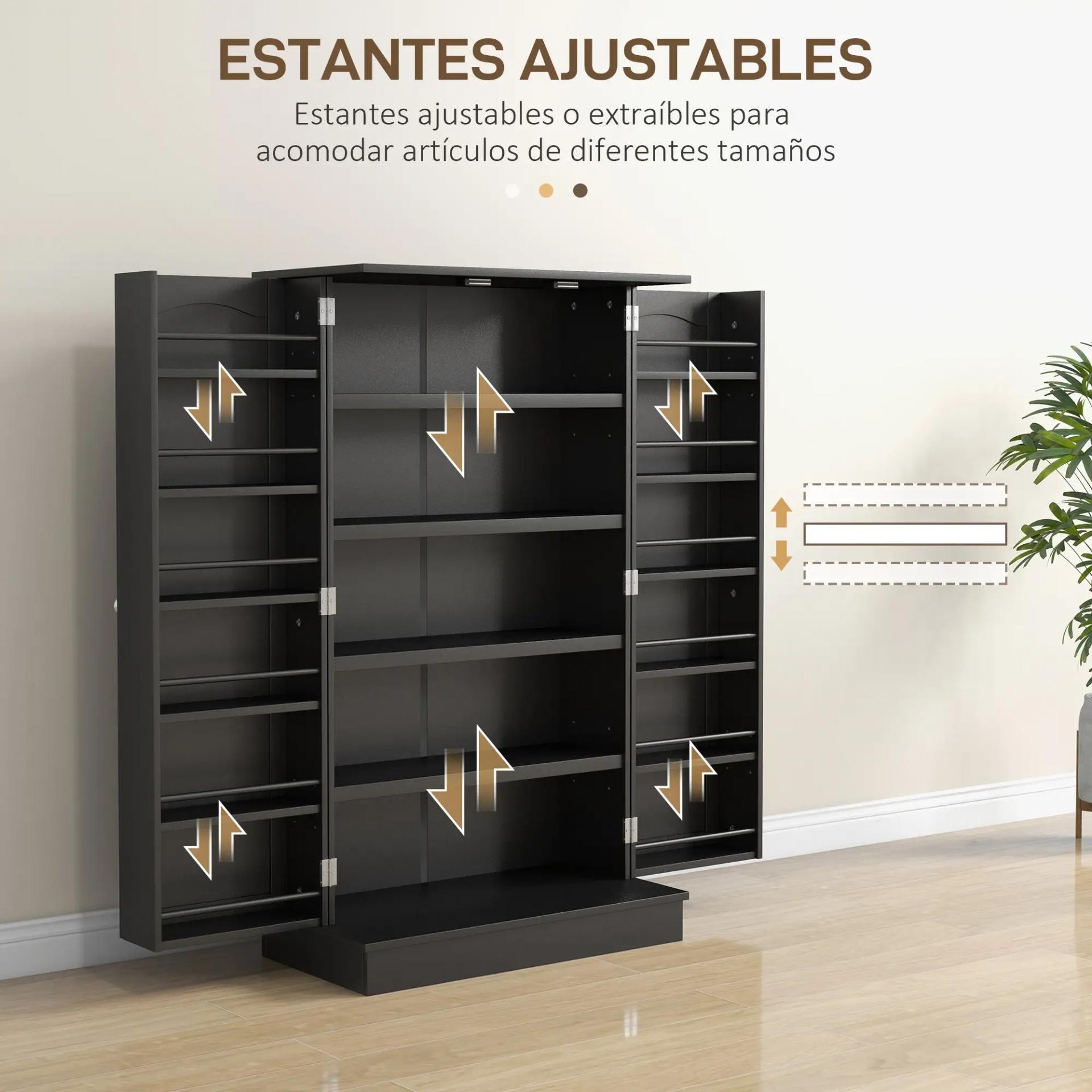 Armario Despensa Cocina con 2 Puertas y 16 Estantes Alacena Moderna con Estantes Ajustables 60x30x104cm Negro