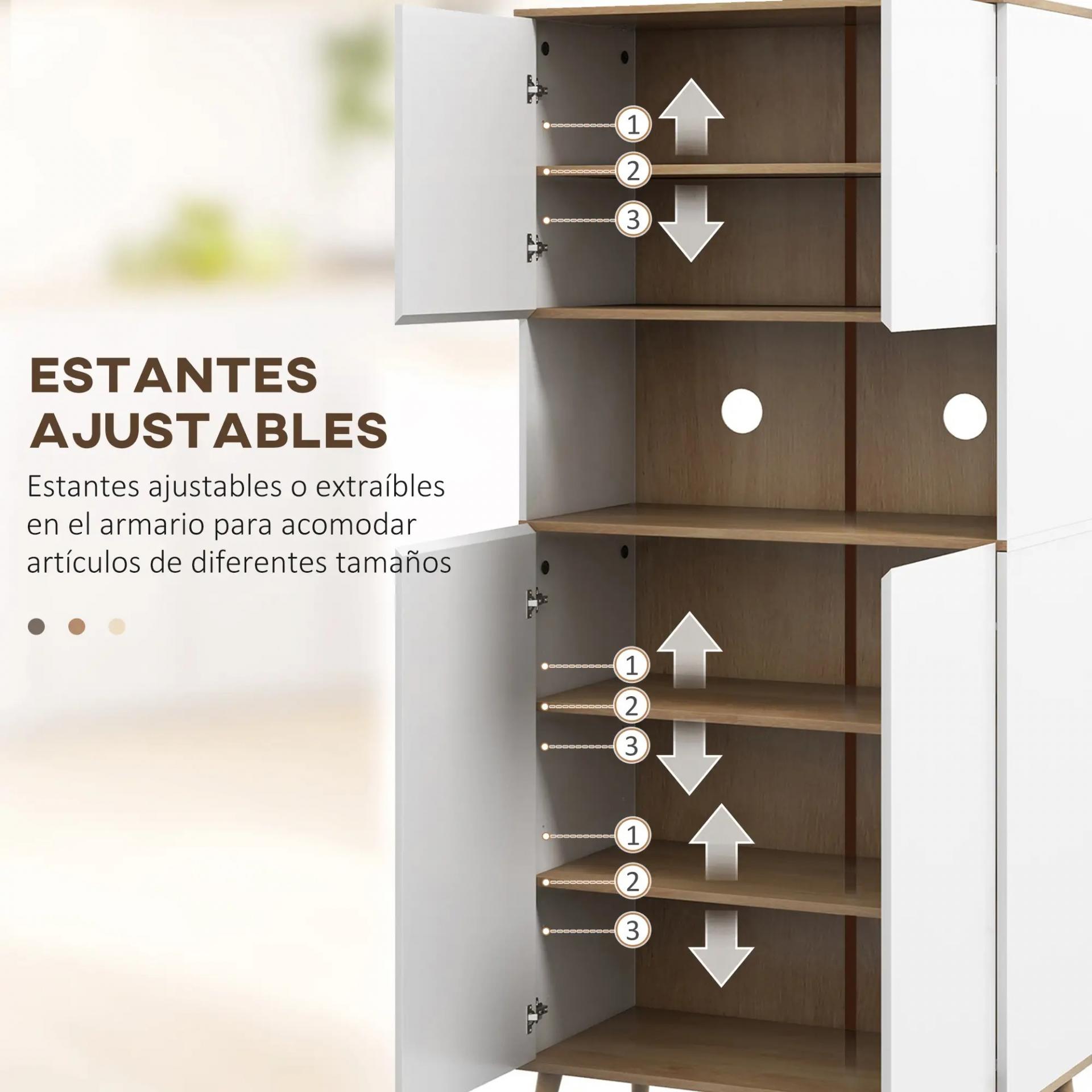 MEDIDAS TOTALES: 80x40x178 cm (ANxPxAL) y soporta hasta 60 kg en total. Esta alacena de cocina despensa requiere montaje. Su estructura está fabricada con paneles de melamina de madera y patas de madera natural