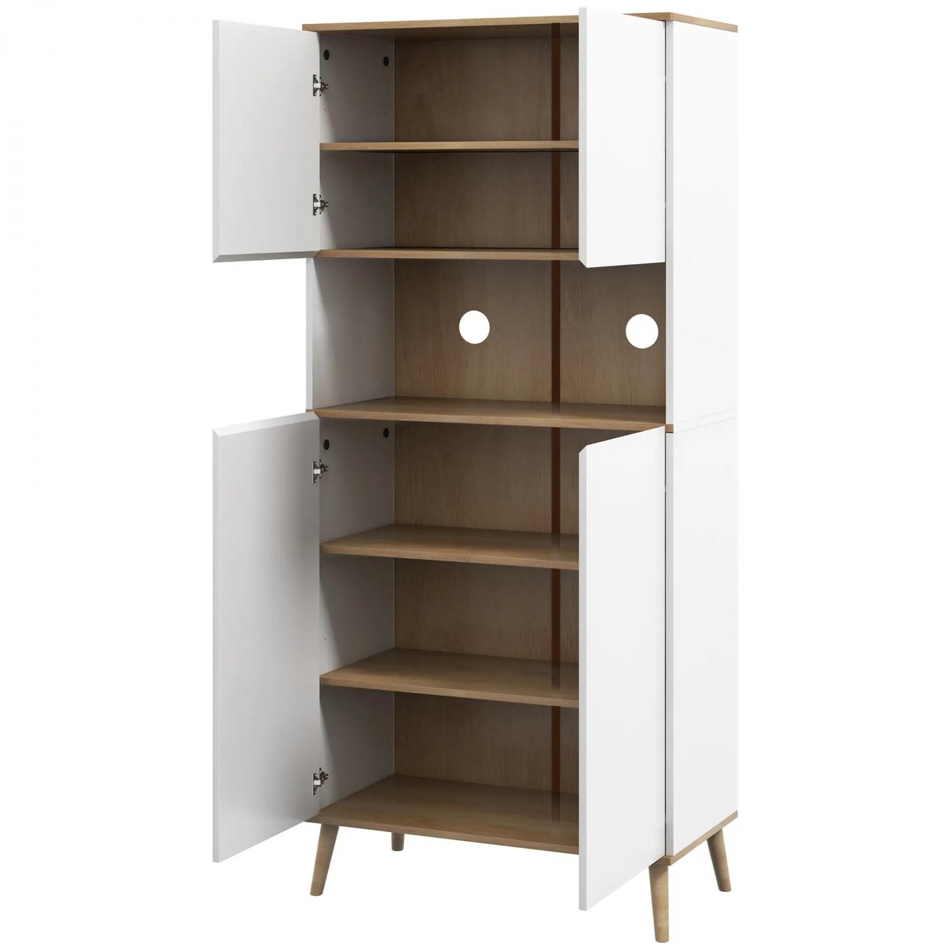 DISEÑO MODERNO Y FUNCIONAL: Esta alacena de cocina combina líneas sencillas con acabados en blanco y madera clara para crear un estilo escandinavo cálido y moderno. Sus patas finas le aportan ligereza visual y encaja bien en diferentes estancias