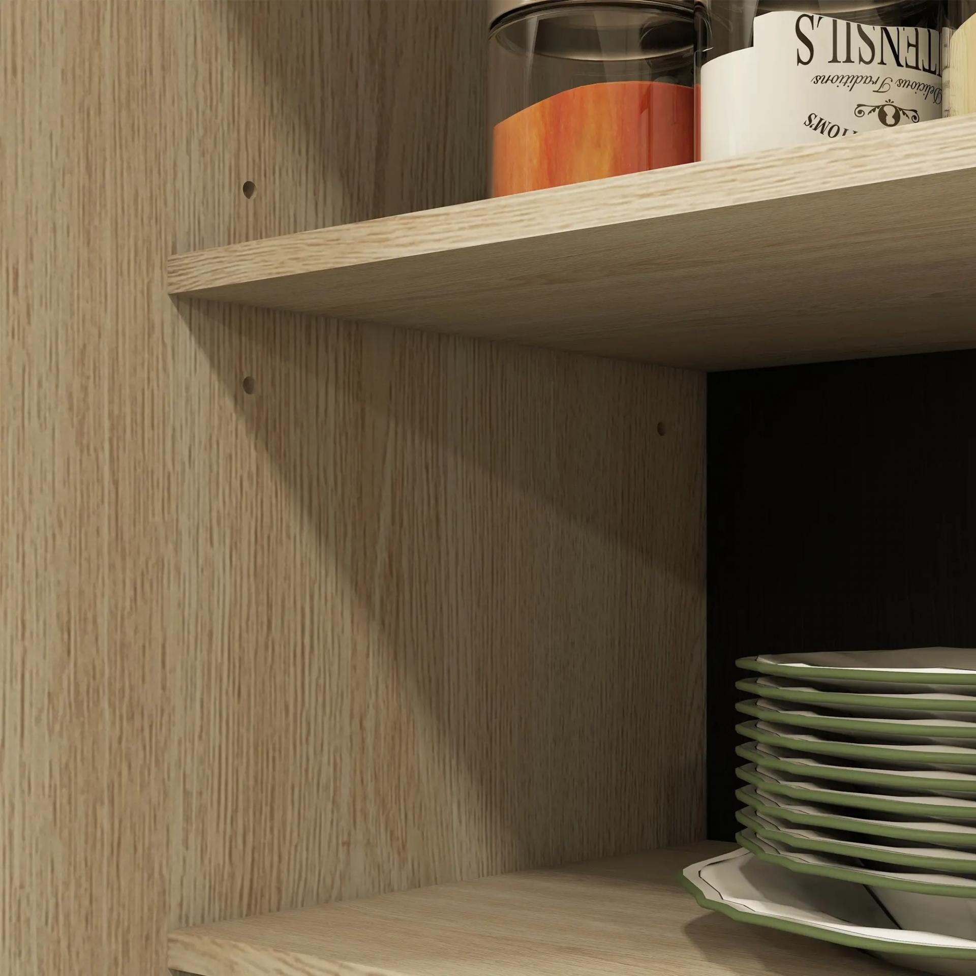 Armario de Cocina con 2 Cajones 2 Armarios 4 Estantes Abiertos Estilo Moderno 90x40x170 cm Roble y Negro