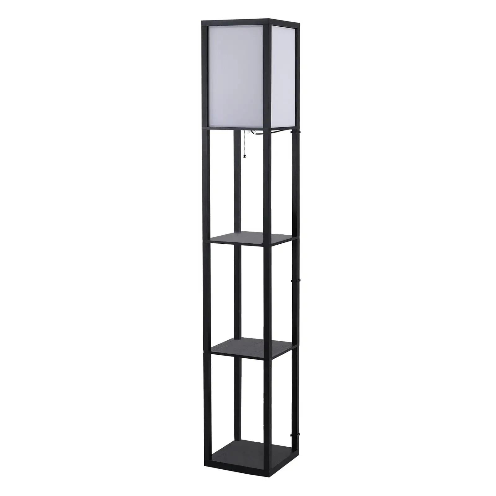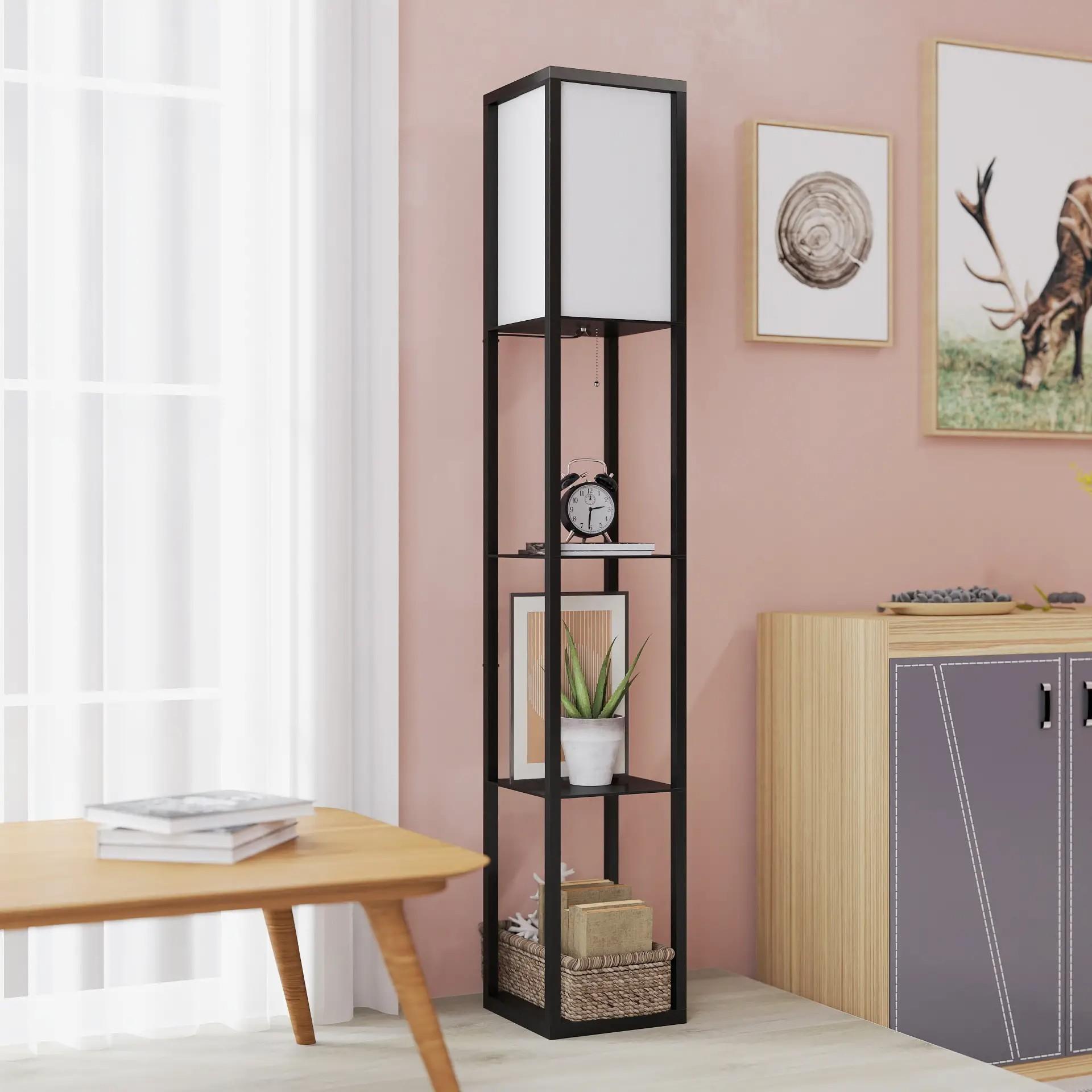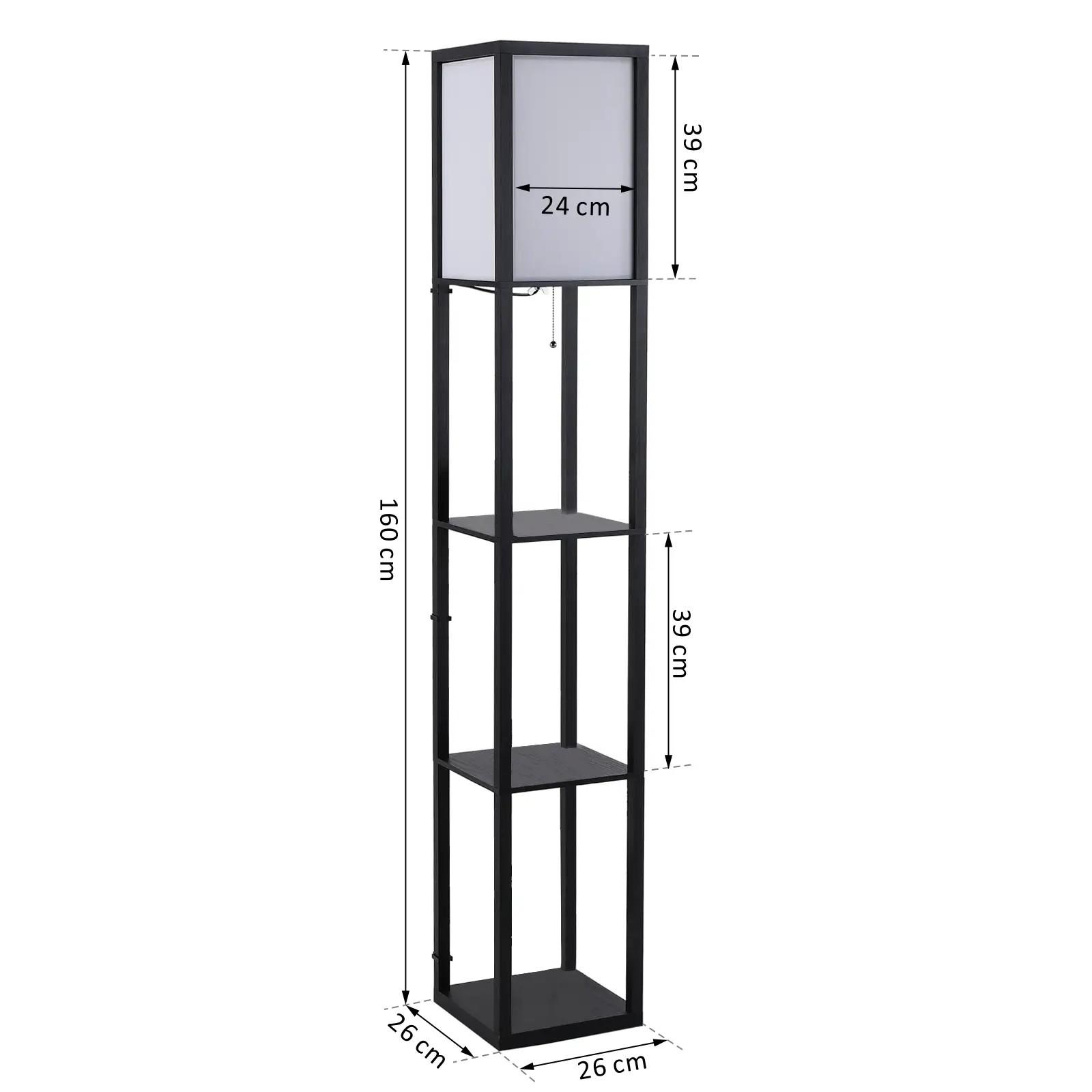 Lámpara de Pie de Madera con 3 Estantes de Almacenaje para Bombilla E27 Potencia Máx. 40W Lámpara Moderna para Salón Dormitorio 26x26x160 cm Negro y Blanco