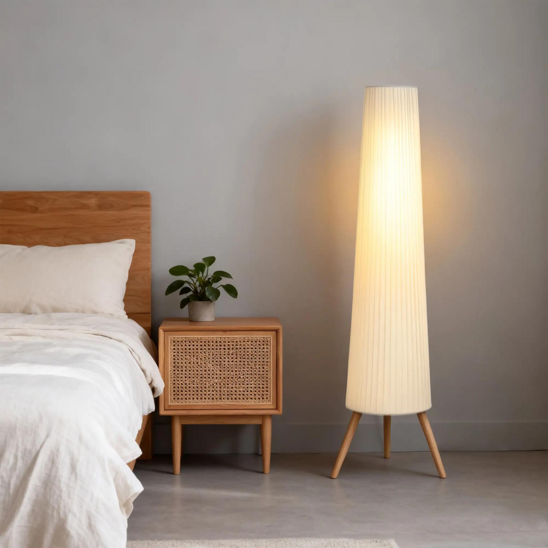 - ESTILO NÓRDICO ELEGANTE: Esta lámpara de pie con trípode de madera natural y pantalla de tela blanca aporta calma y calidez al salón, dormitorio, rincón de lectura u oficina; su estilo discreto se integra fácilmente en espacios modernos y acogedores