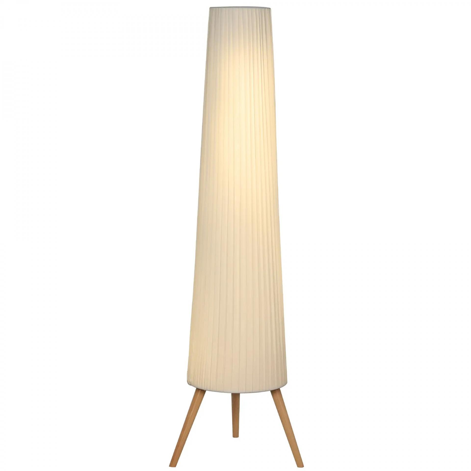 Lámpara de Pie con Trípode Brillo Ajustable 3 Niveles Interruptor de Pie Patas de Madera y Pantalla de Tela Blanco