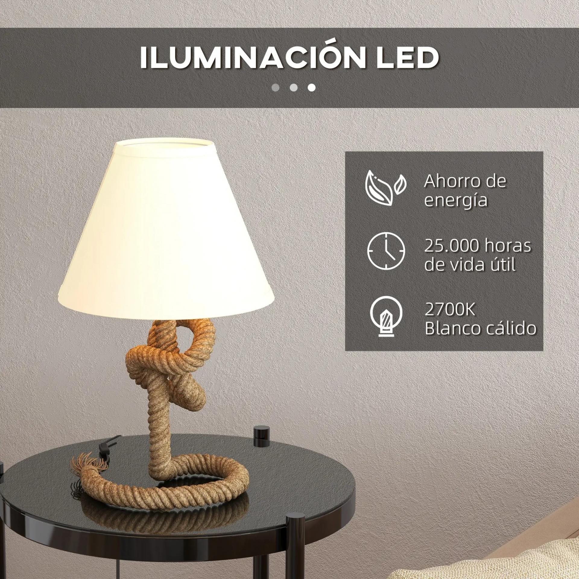 - CON ILUMINACIÓN LED: Lámpara de mesa con luz LED cálida de 2700K y brillo de 350 lúmenes. Ofrece alta luminosidad con bajo consumo y una vida útil de 25,000 horas. Ideal para lectura, conversación o iluminación decorativa.