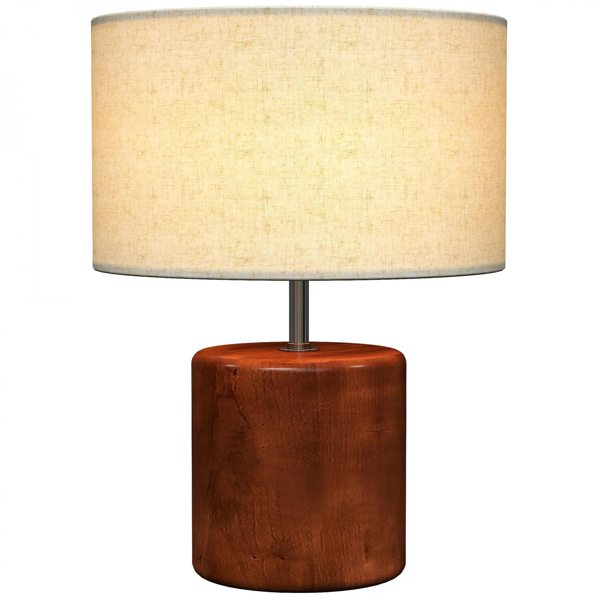 Lámpara de Mesa Rústica Lámpara de Mesita de Noche con Base de Madera Pantalla de Lino Interruptor Basculante Marrón
