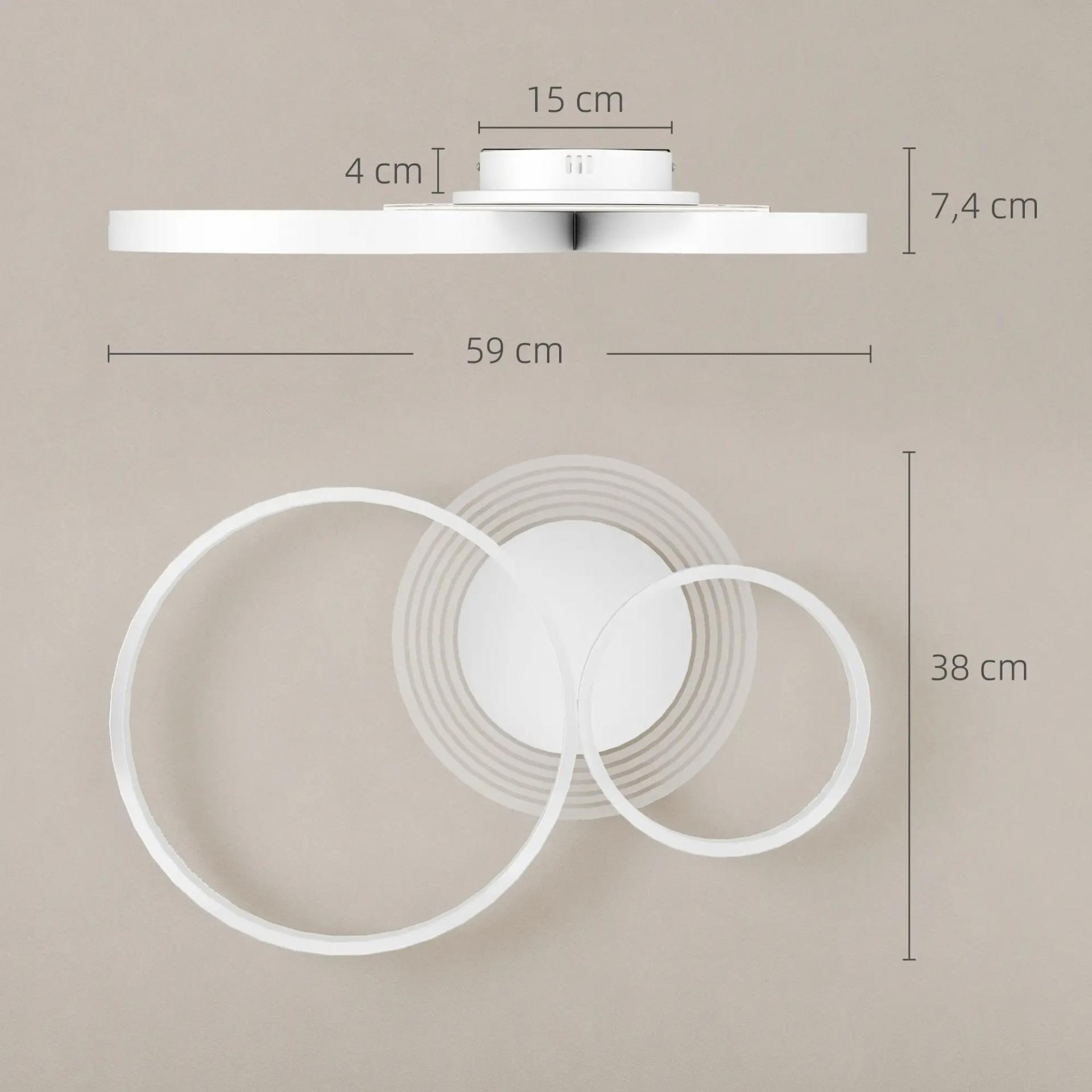 MEDIDAS TOTALES: Con unas dimensiones de 59x38x7,4 cm y aros de Ø36, Ø28 y Ø23 cm, esta lámpara LED de techo incluye todos los accesorios necesarios para un montaje sencillo, rápido y seguro, sin necesidad de herramientas complicadas. Nota: Este plafón solo permite ajustar la temperatura de color, el brillo no es regulable