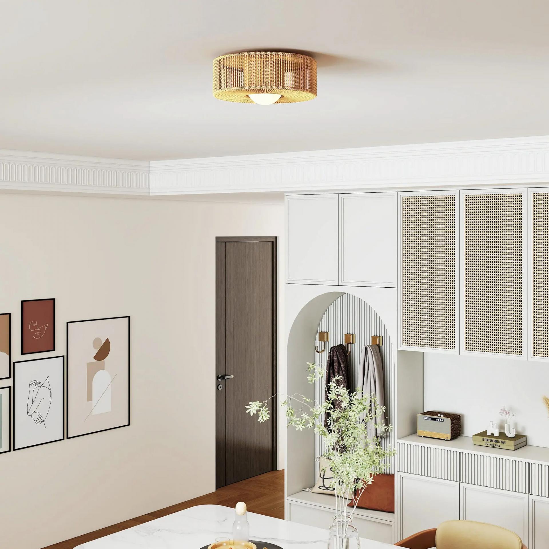Lámpara de Techo LED Bohemio 20W 3000 K con Pantalla de Cuerda de Lino para Dormitorio Salón Cocina Comedor Marrón
