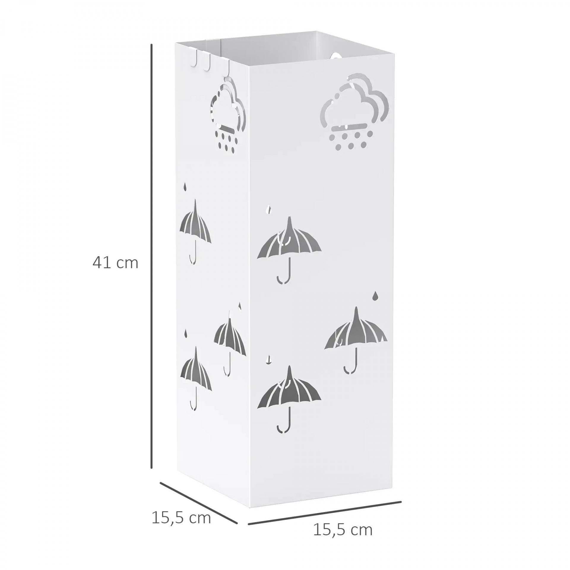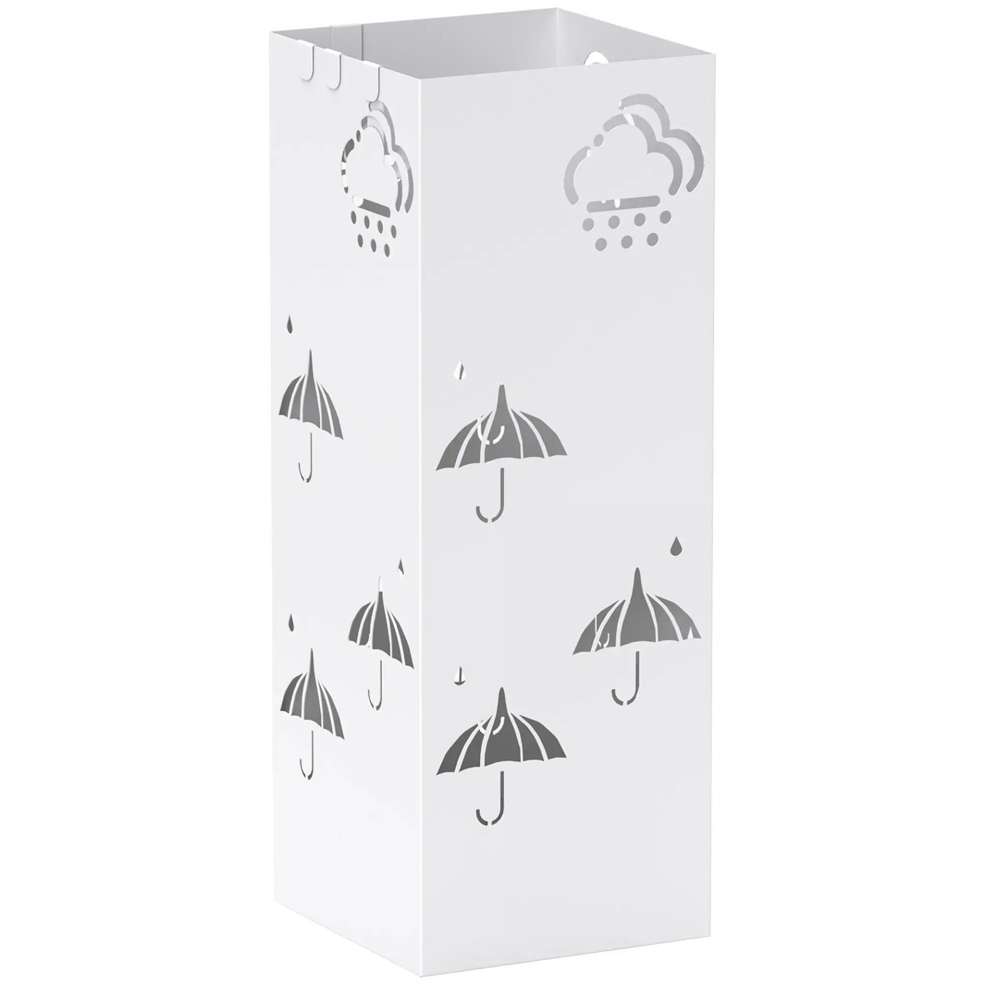 Paragüero de Acero con Bandeja Recoge Gotas Ganchos para Paraguas Plegables y Diseño Decorativo 15,5x15,5x41 cm Blanco