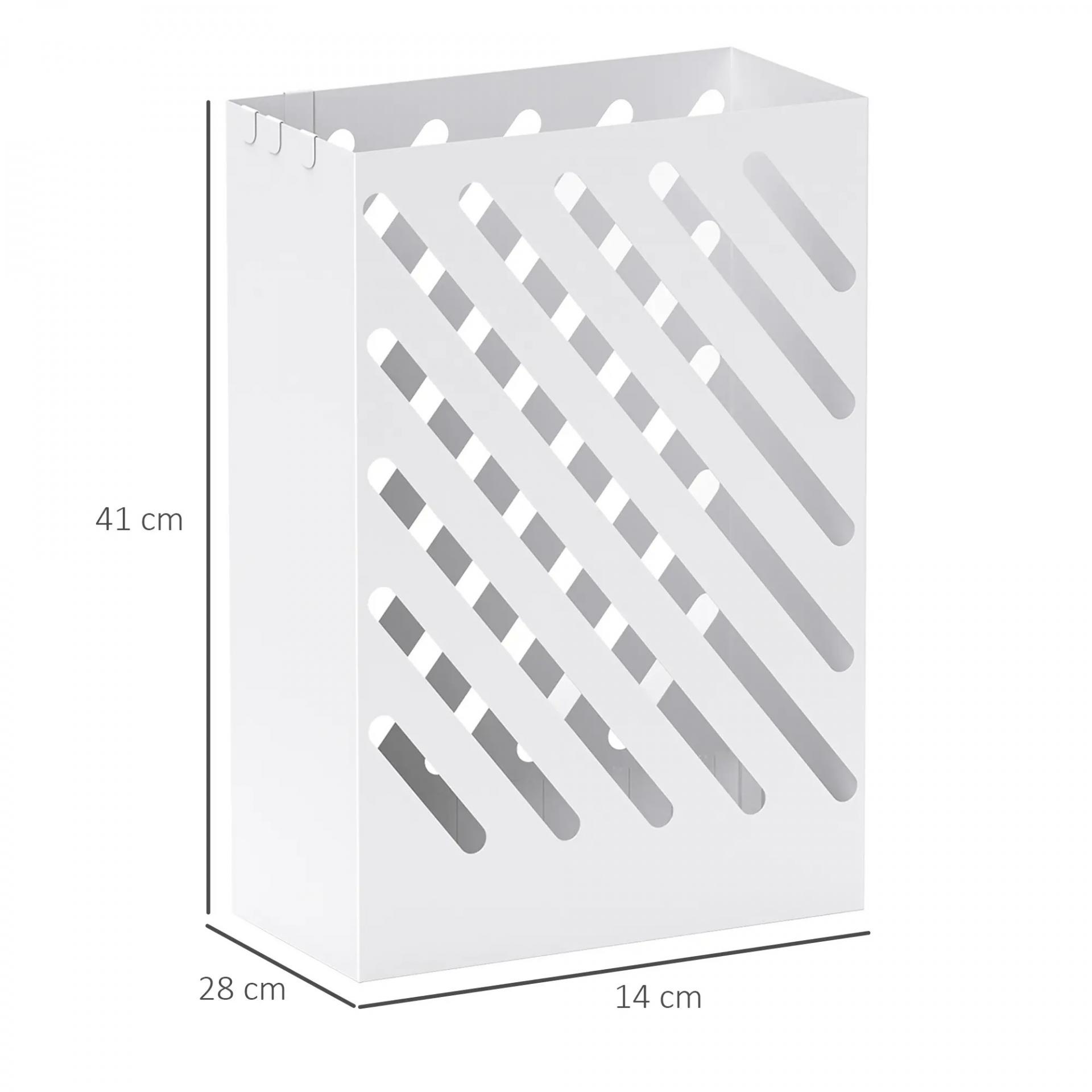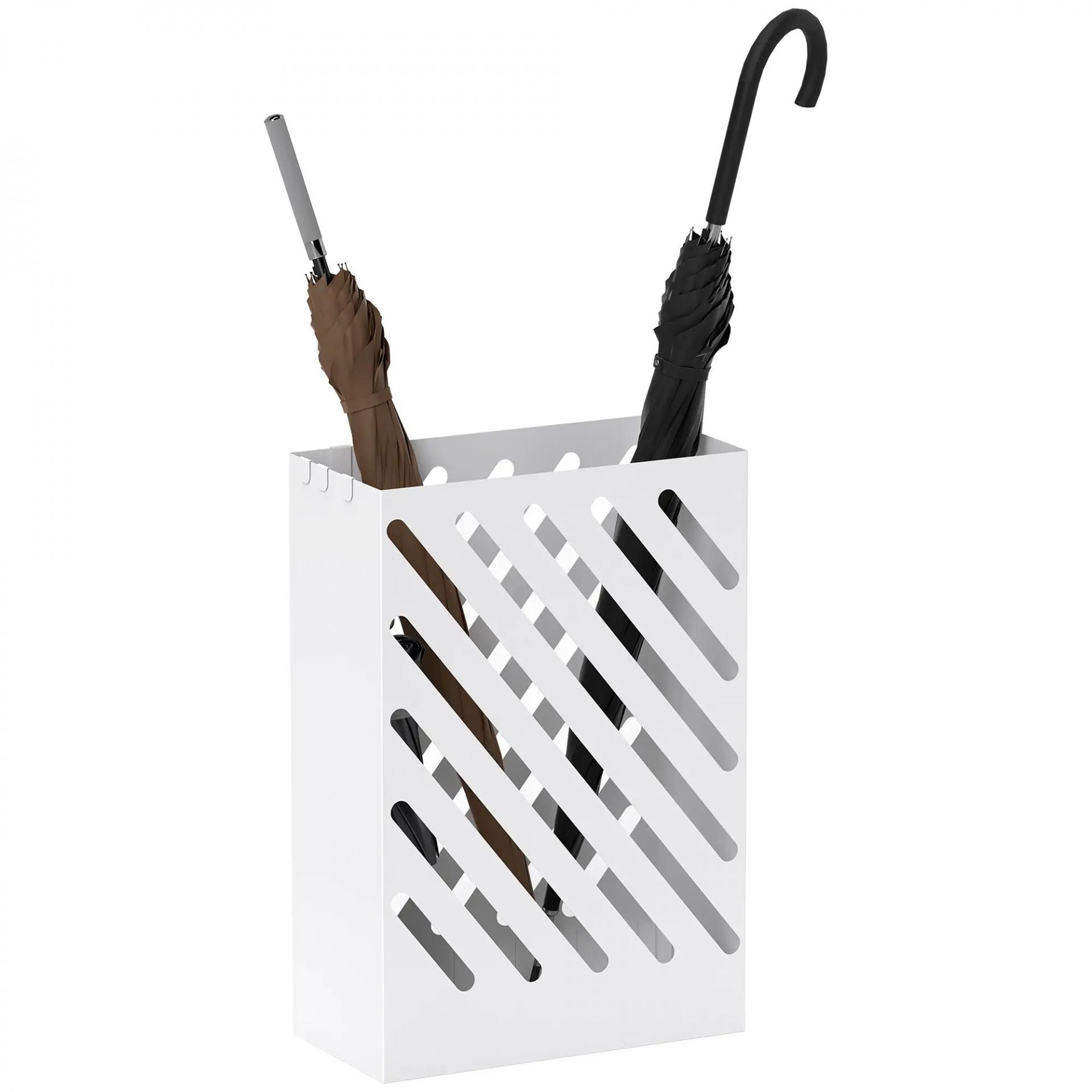 Paragüero de Acero Galvanizado Soporte de Paraguas Estrecho con Bandeja de Goteo Extraíble 4 Ganchos 28x14x41 cm Blanco