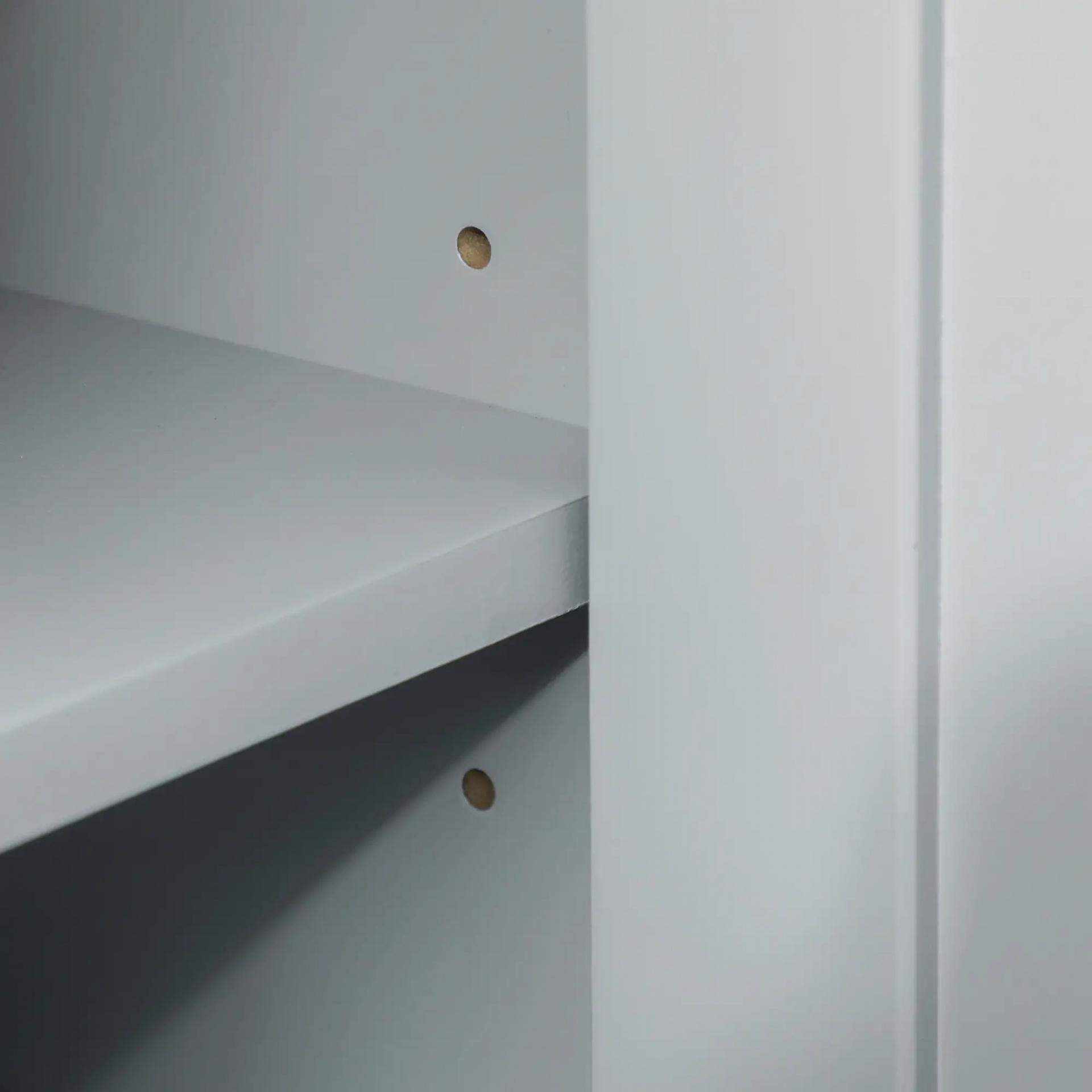 - BALDA AJUSTABLE: Mueble de baño compuesto por un armario con puerta y un estante inferior abierto. En el interior del armario hay una balda ajustable en altura para mover hacia arriba y hacia abajo
