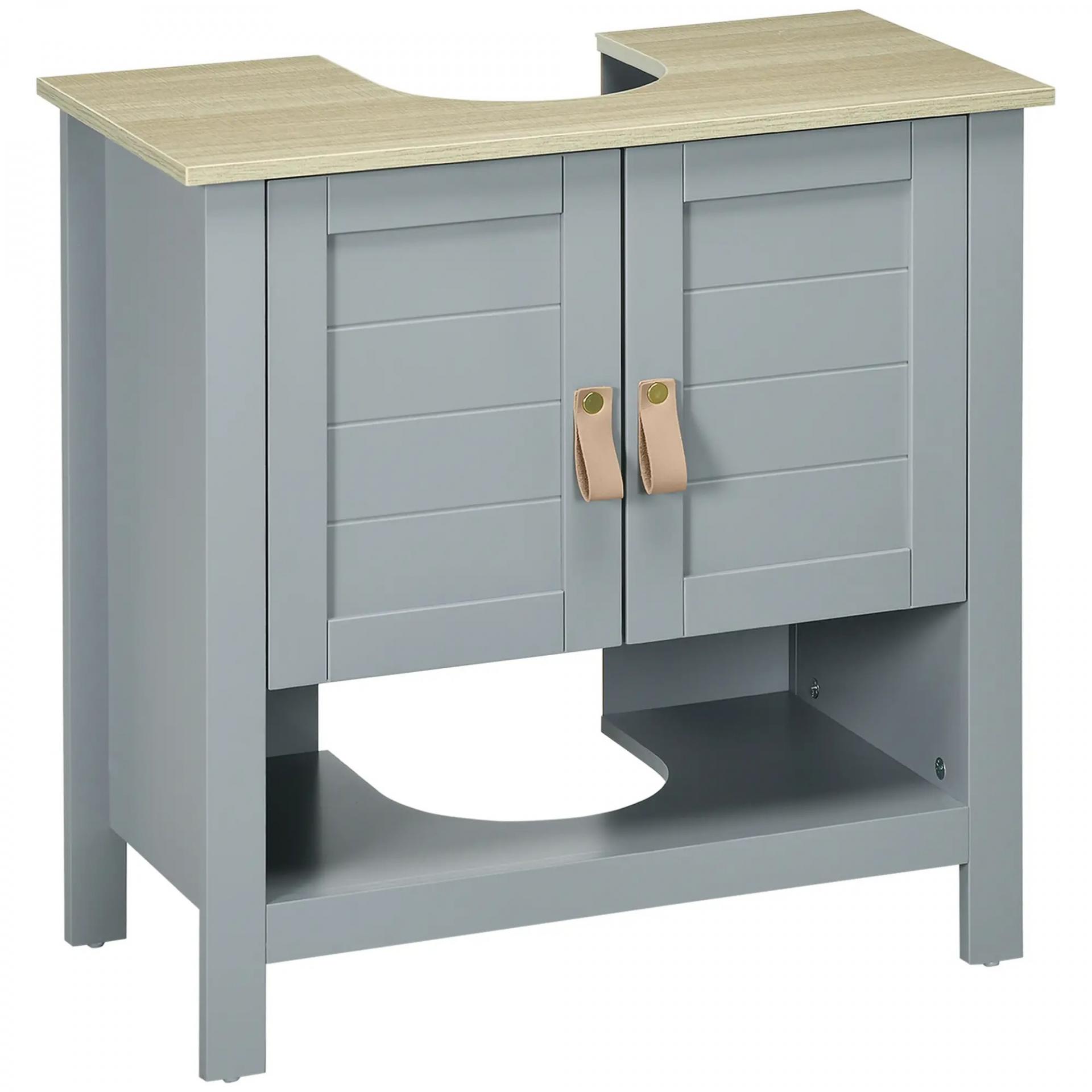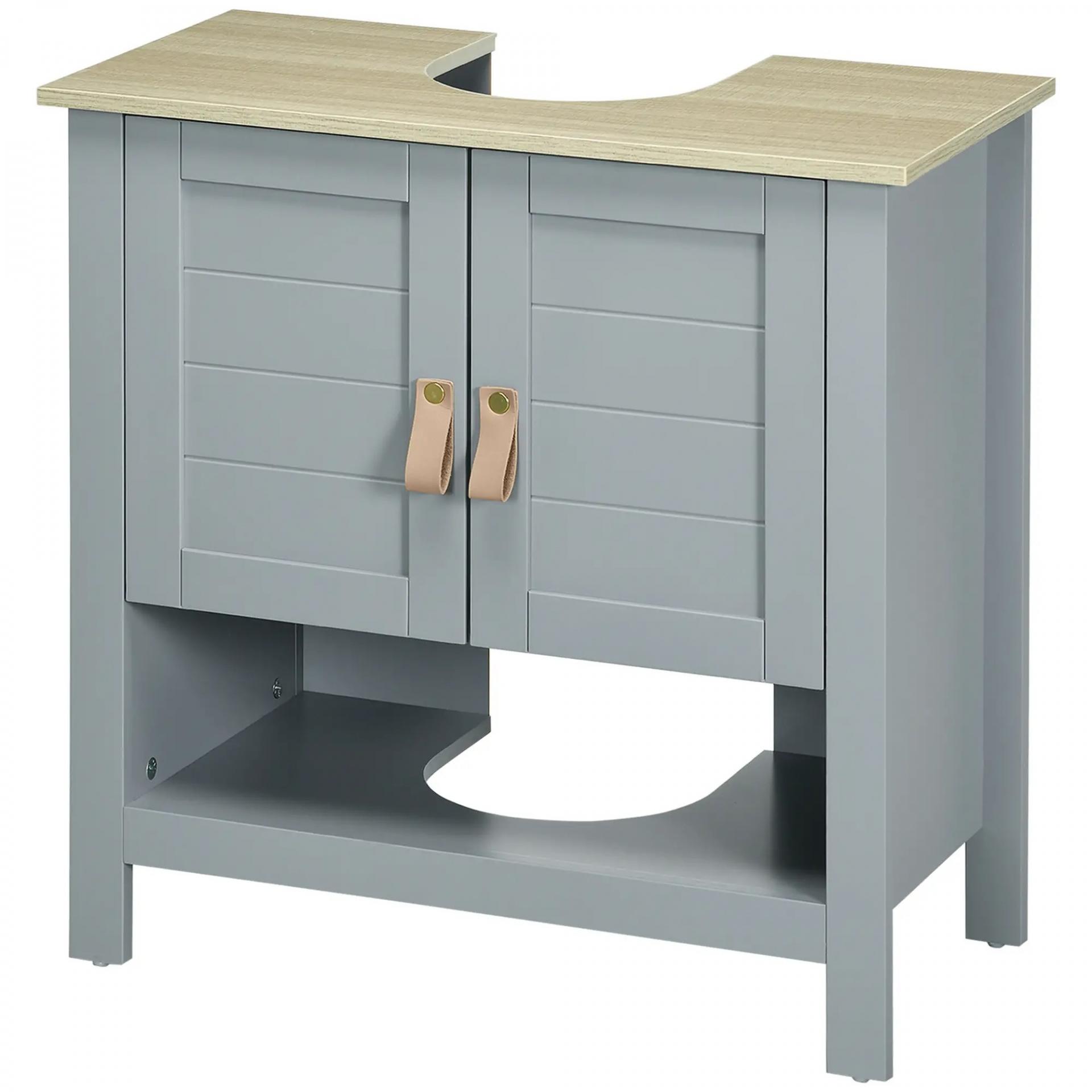 Armario para Debajo de Lavabo Compacto con 2 Puertas y Estante Interior Ajustable Mueble Auxiliar de Almacenamiento para Baño 60x30x60 cm Gris
