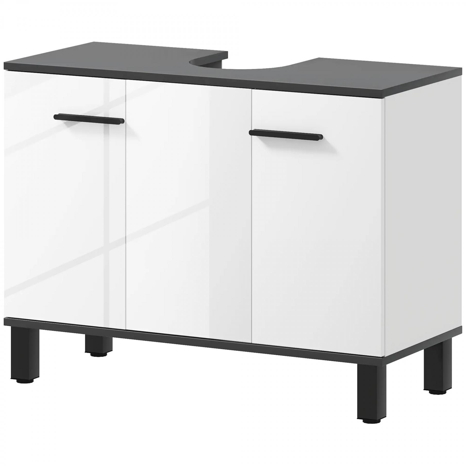 - ALMACENAMIENTO INTELIGENTE Y COMPACTO: Aprovecha al máximo el espacio bajo tu lavabo con este mueble que cuenta con un estante ajustable de tres niveles tras dos puertas, ideal para organizar tus imprescindibles de baño de diversas alturas y tamaños