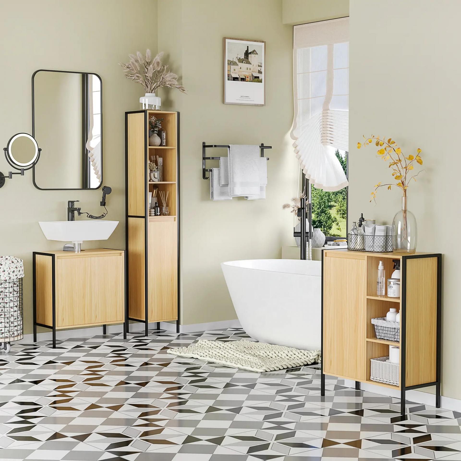 - RESISTENTE Y SEGURO: Este mueble de lavabo de pie cuenta con un marco metálico y estructura de melamina de madera. Además, cuenta con un sistema antivuelco para que puedas fijarlo en la pared para mayor seguridad y estabilidad