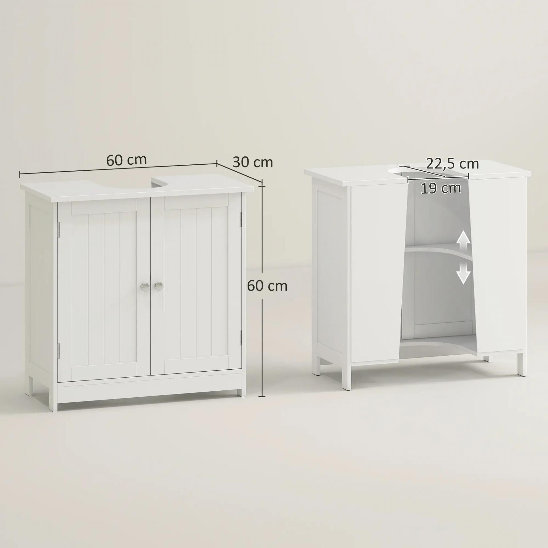 Mueble bajo Lavabo, Mueble de Baño con 2 Puertas y Estante Ajustable, Armario de Baño para Lavabo con o sin Pedestal, Estilo Moderno, 60x30x60 cm Blanco