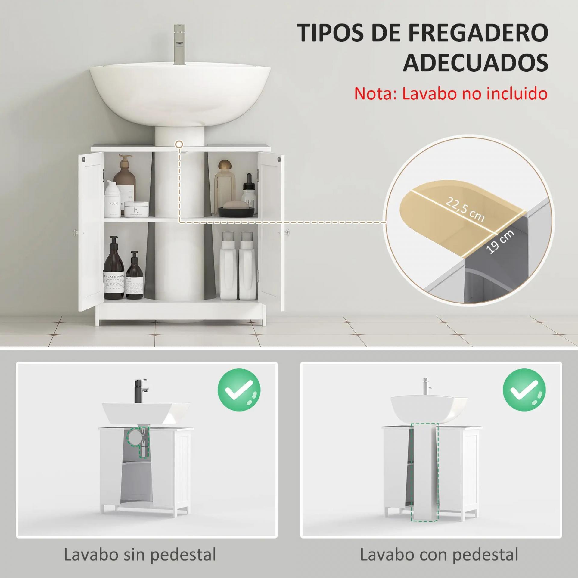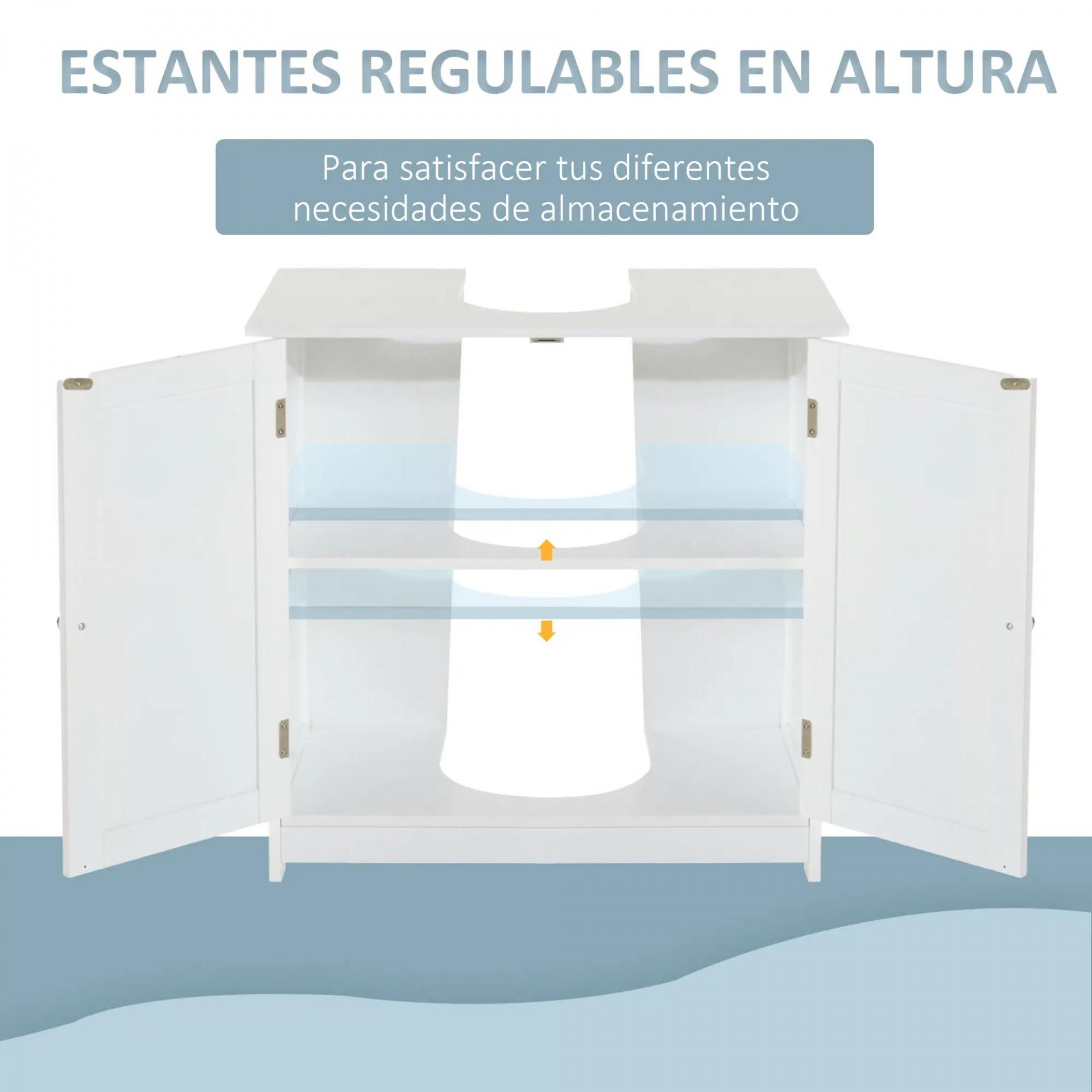 - MATERIAL RESISTENTE: Mueble hecho en MDF resistente, apto para colocar en el baño debajo del lavabo, capaz de soportar hasta 15 kg de peso. Puertas con bonitas manijas de metal, para garantizar una fácil apertura y cierre de las puertas