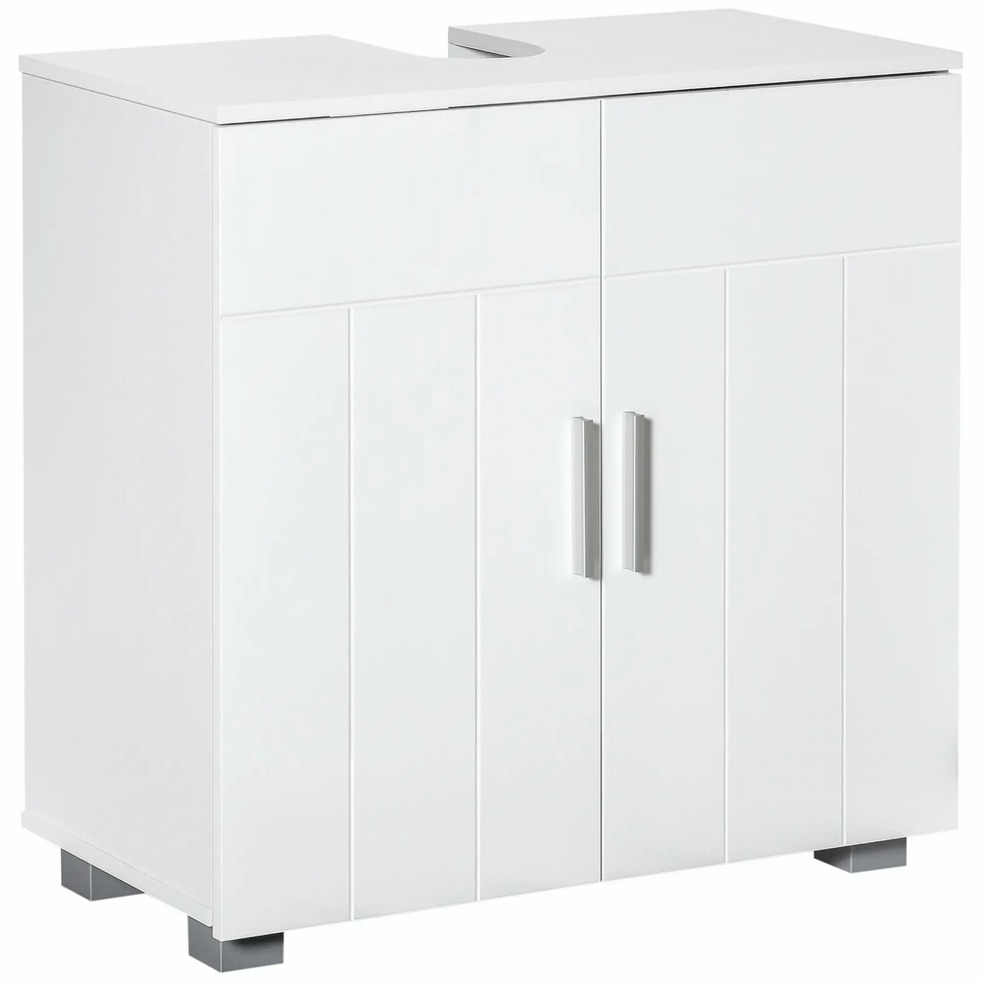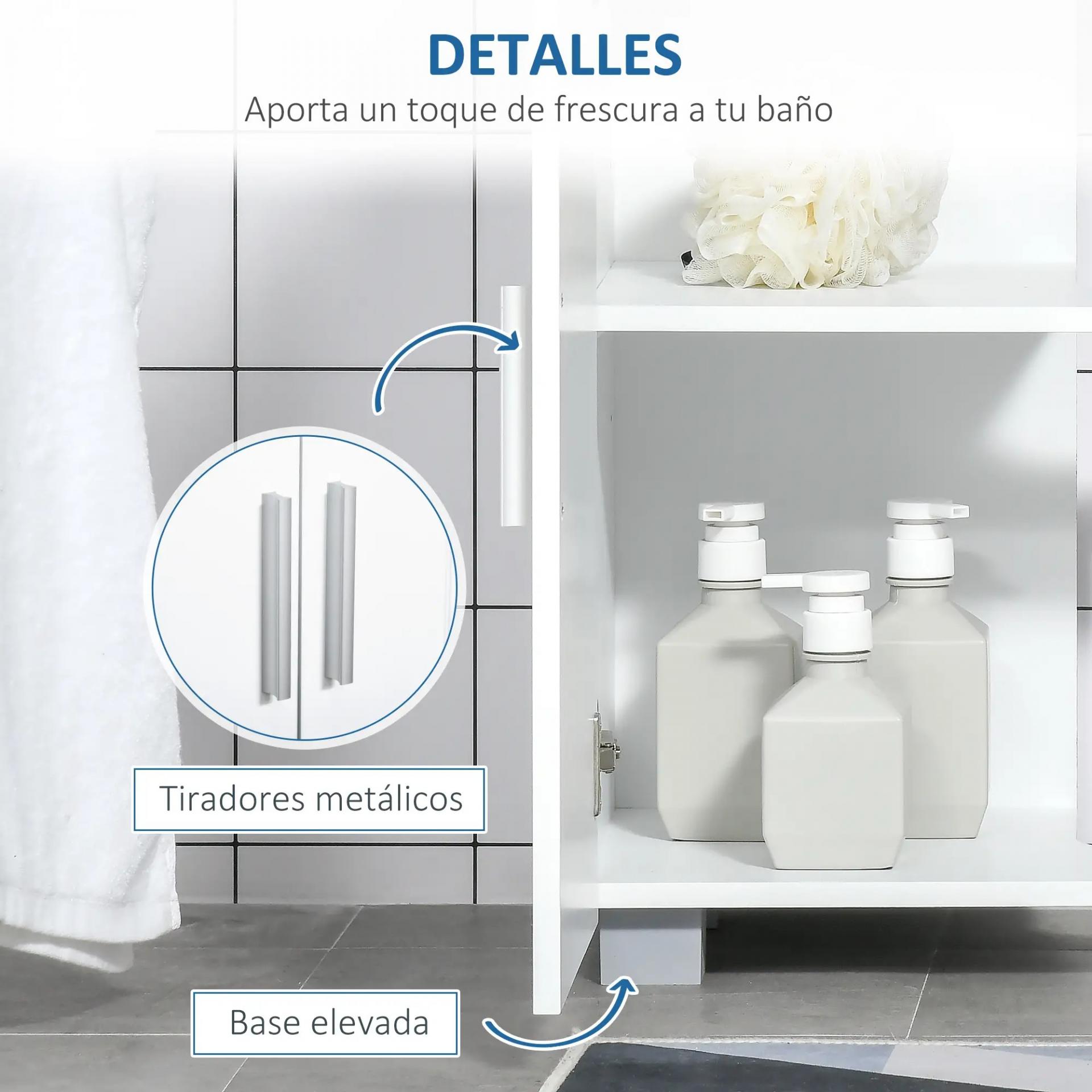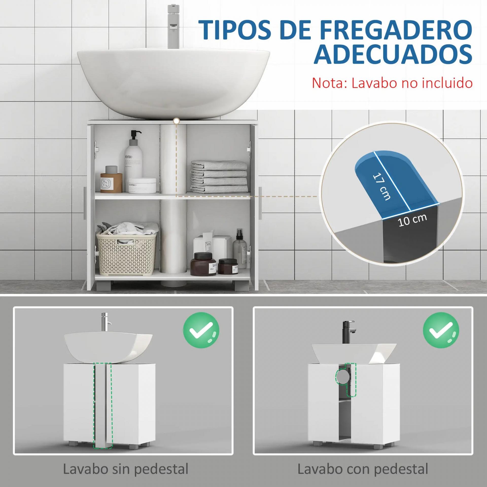 Mueble para Debajo del Lavabo Armario Baño de Suelo de Madera con 2 Puertas y Estante Ajustable Interior Moderno 60x30x60 cm Blanco