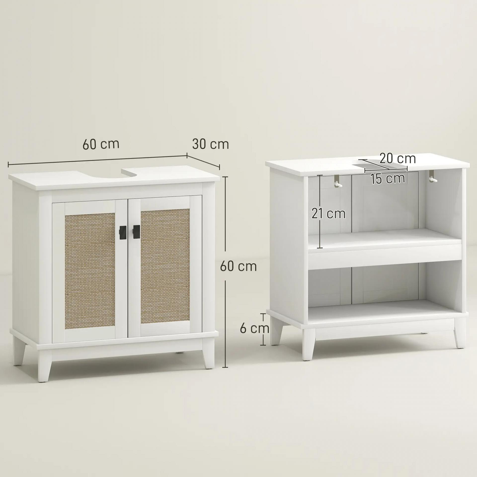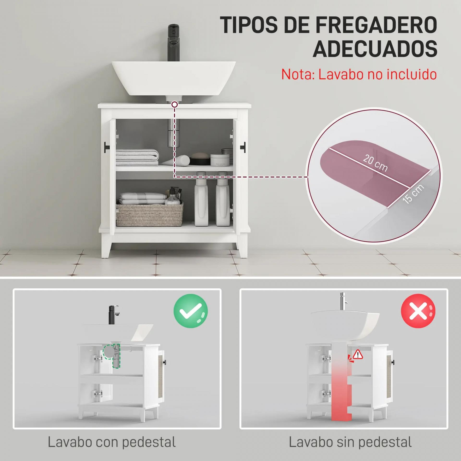 Mueble para Debajo del Lavabo con 2 Puertas 2 Estantes y Sistema Antivuelco para Cuarto Baño 60x30x60 cm Blanco