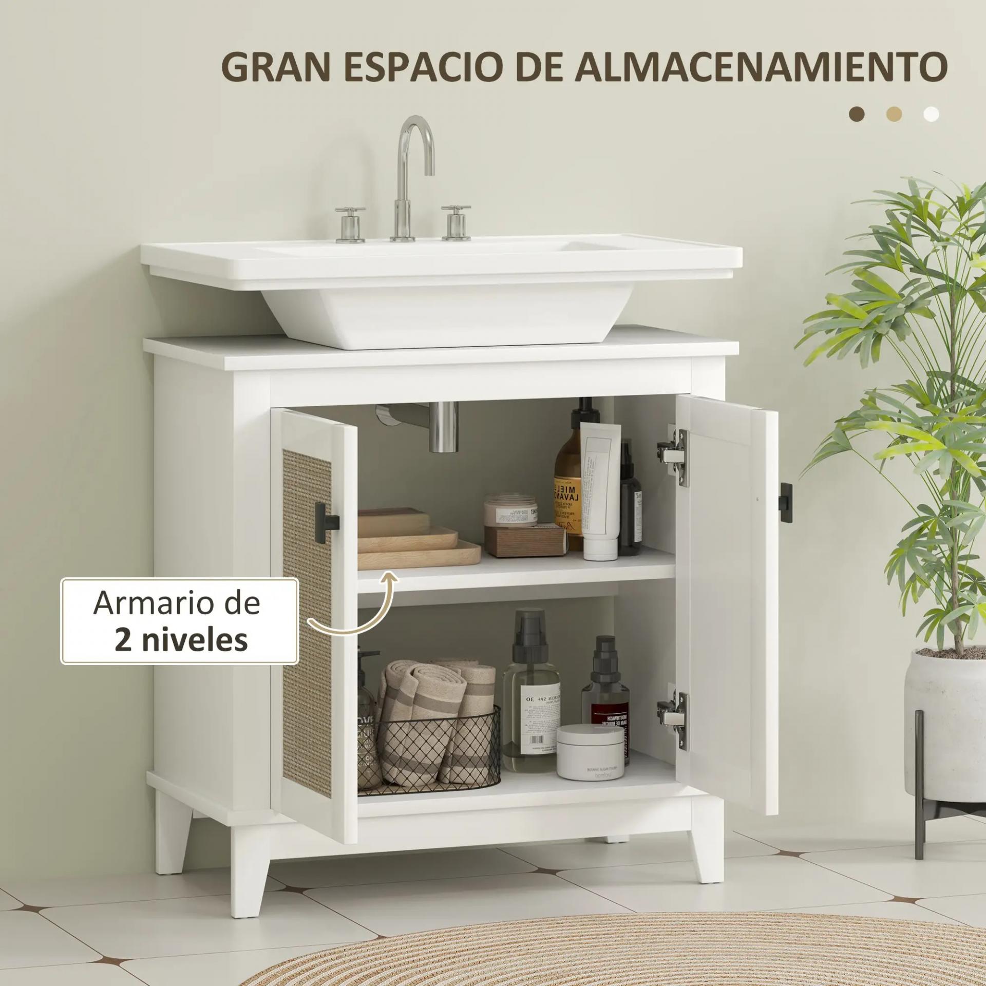 - TOQUE BOHEMIO: Añade un toque bohemio a tu baño con este mueble para lavabo, que destaca por sus puertas con frontales de ratán PE y elegantes tiradores metálicos negros, combinando funcionalidad y estilo