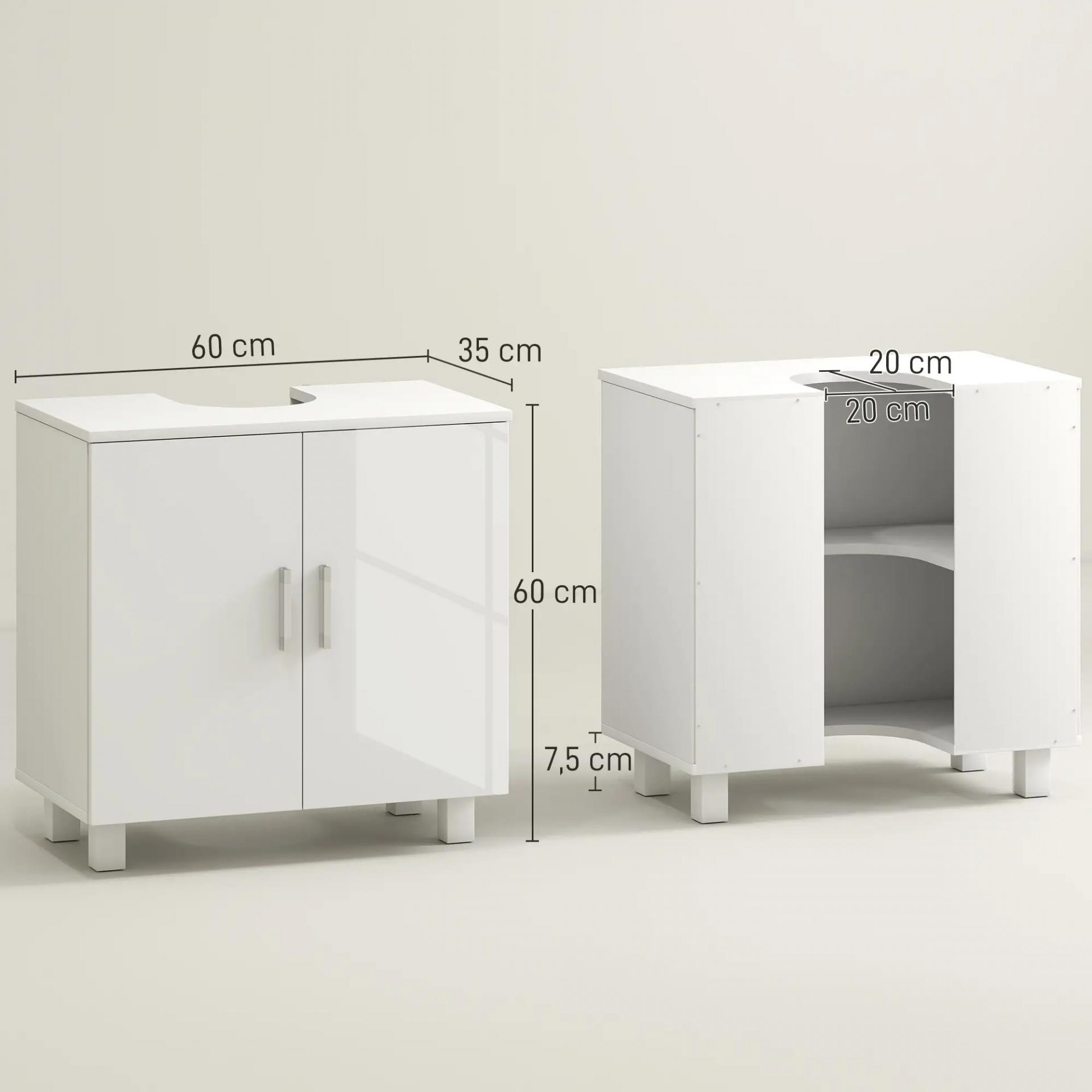 Mueble para Debajo del Lavabo con 2 Puertas 2 Estantes y Sistema Antivuelco para Cuarto Baño 60x35x60 cm Blanco