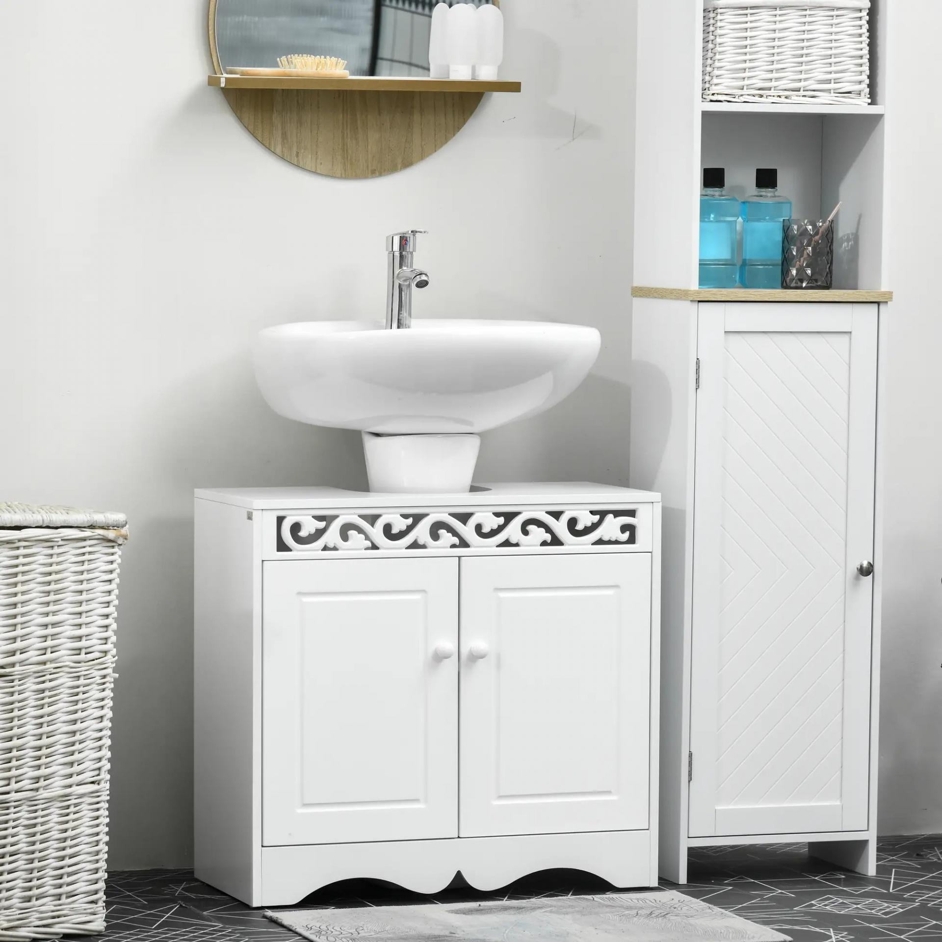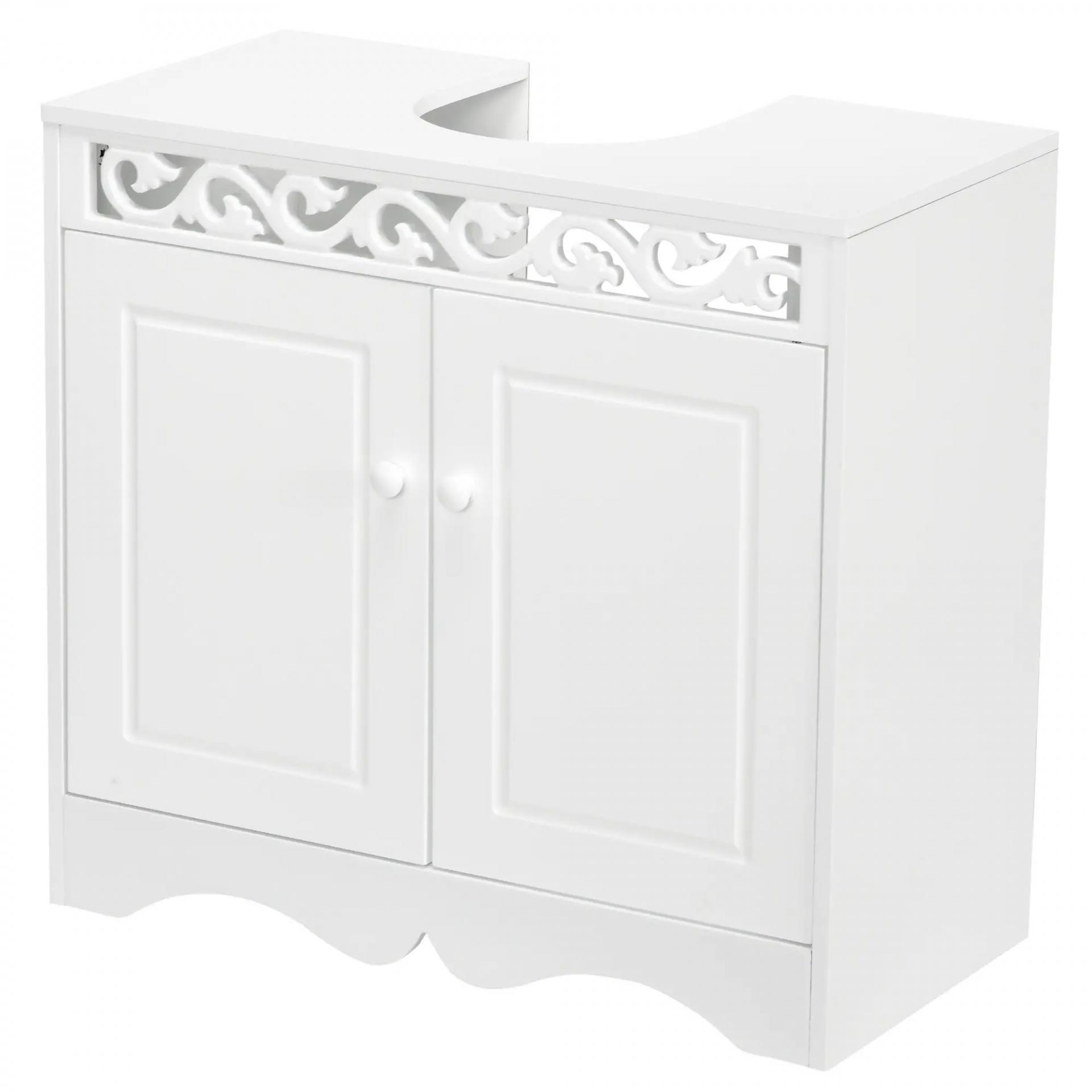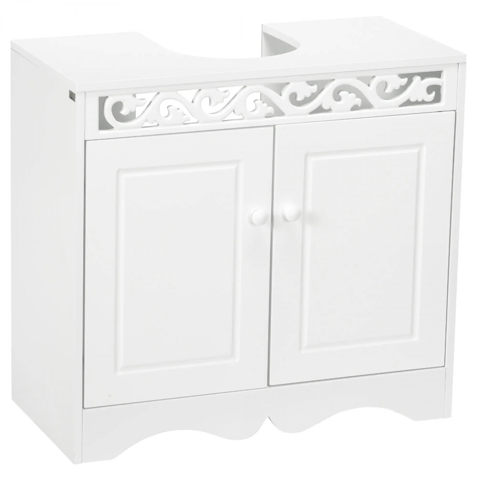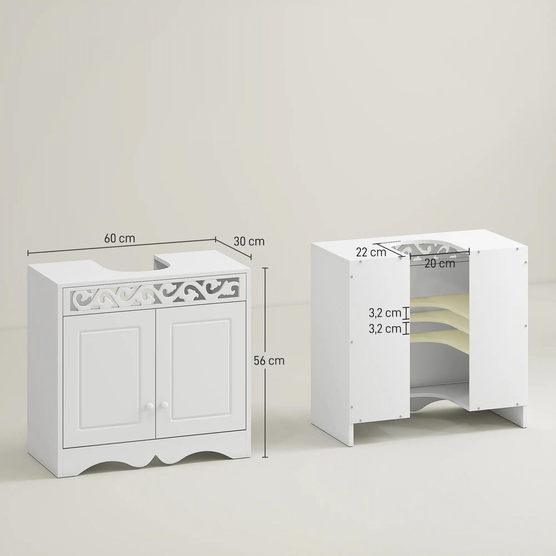Armario de Baño tipo Mueble Bajo para Lavabo con 2 Puertas y Estantes 60x30x56cm Diseño Moderno de Madera Blanca