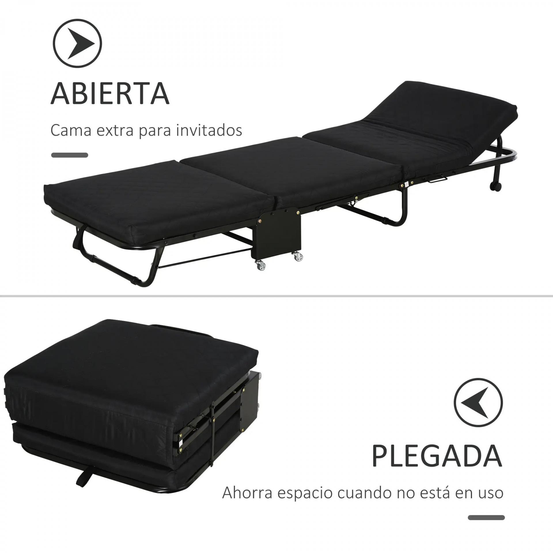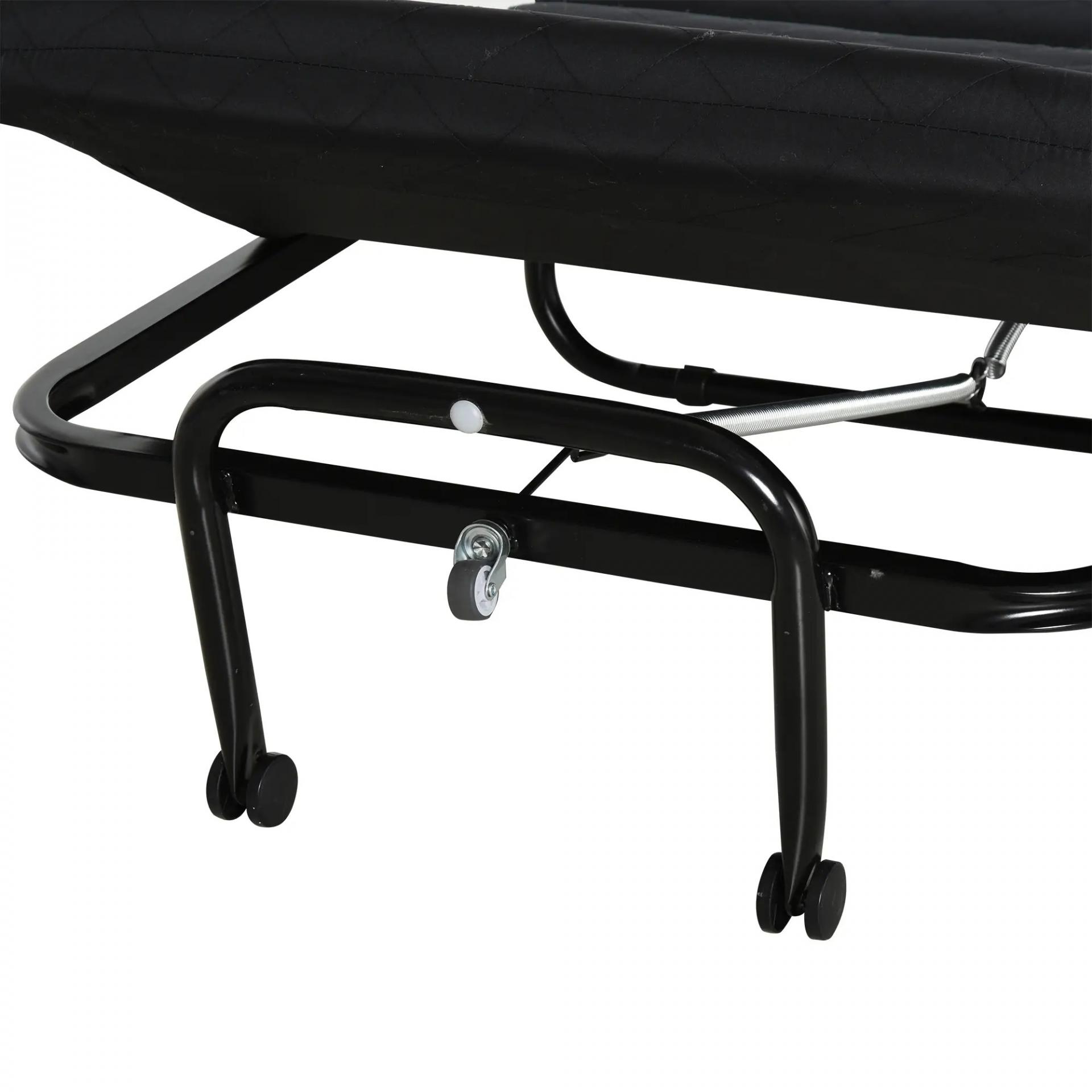 Cama Abatible 184x65 cm con Cabecera Ajustable Ruedas Universales y Estructura de Metal Carga Máx. 120 kg Negro