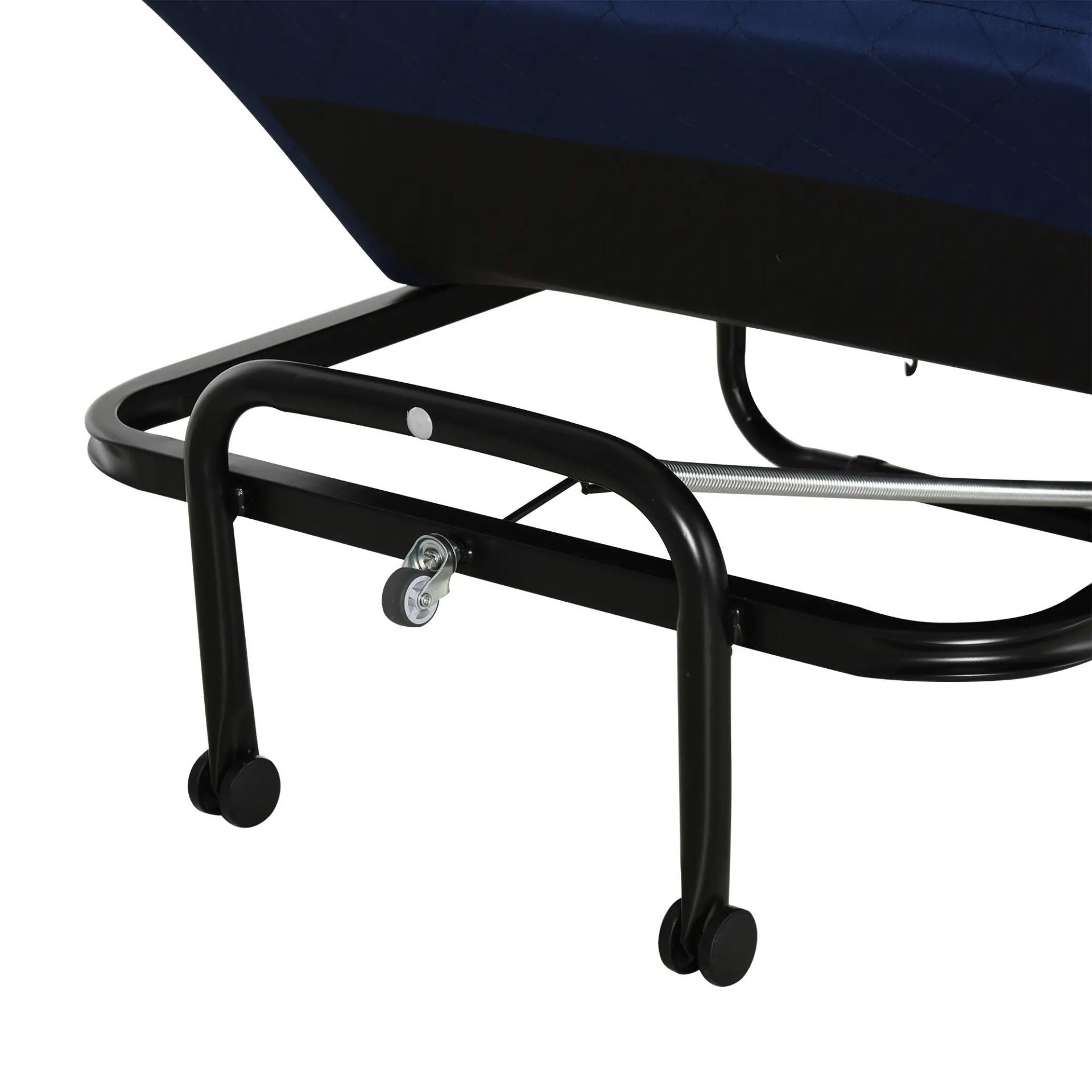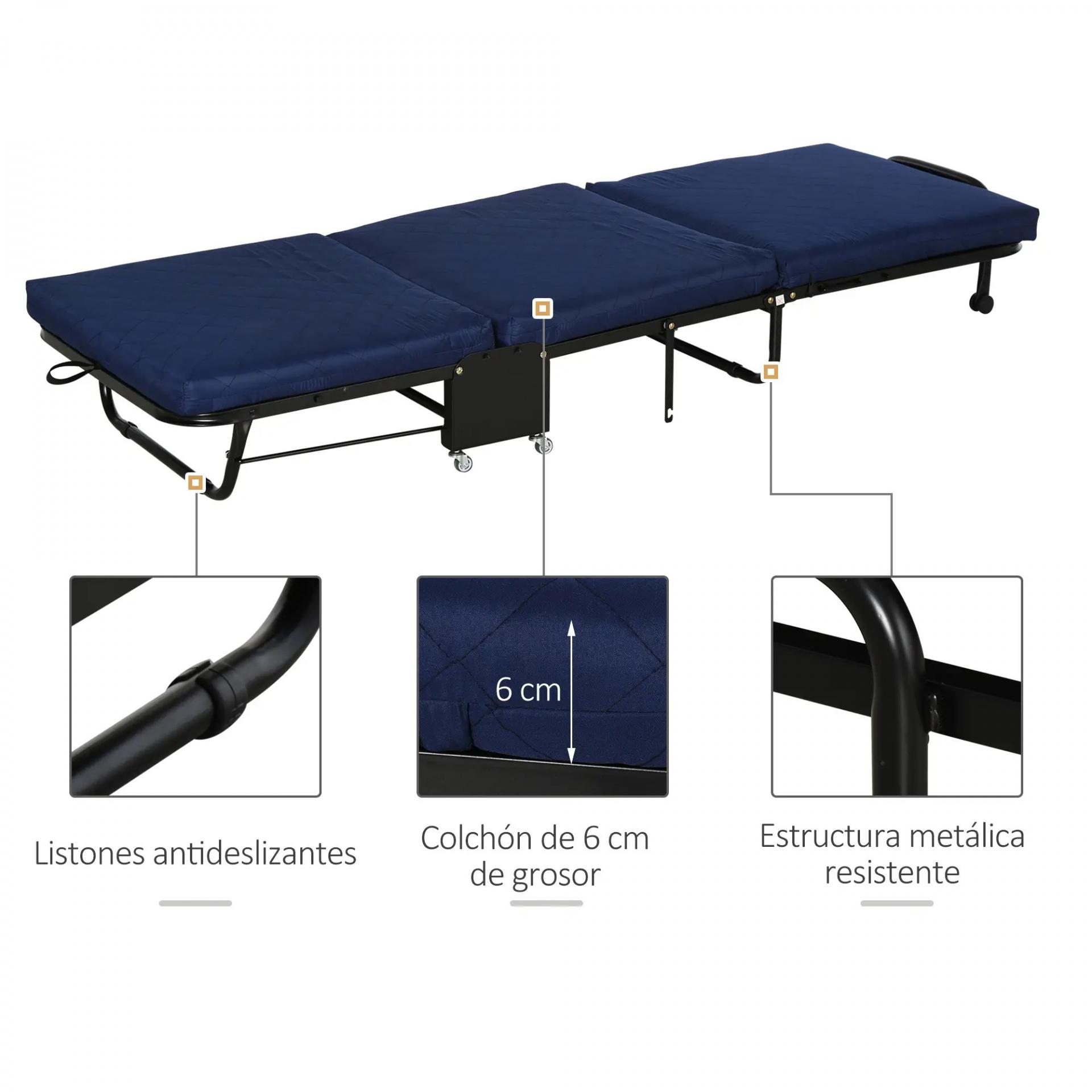 Cama Plegable 184x65 cm con Colchón Cama Abatible con Cabecera Ajustable en 5 Niveles Ruedas Universales y Estructura de Metal Carga Máx. 120 kg Azul
