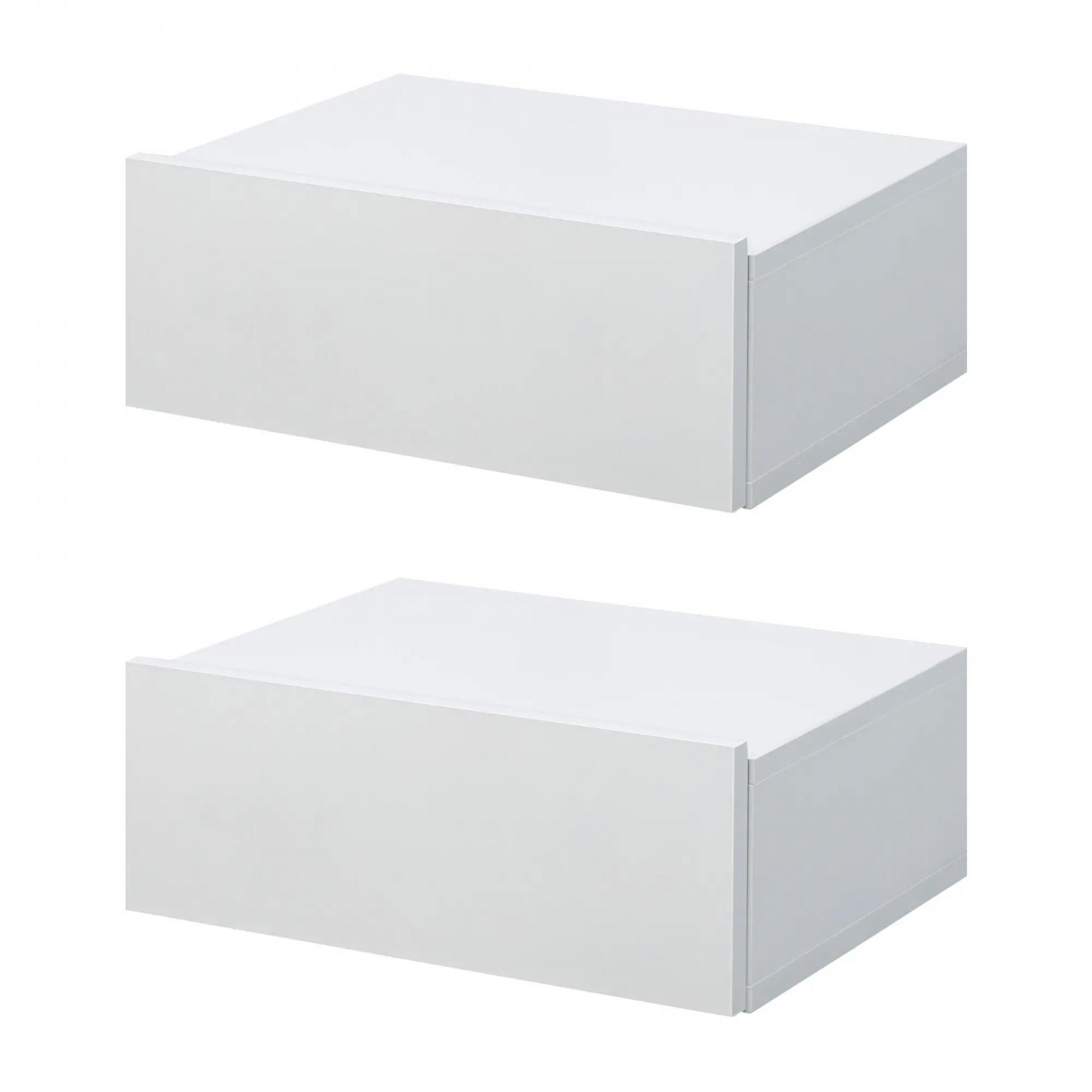 CONJUNTO DE 2 MESITAS: Incluye 2 mesillas de noche de pared idénticas, con diseño moderno y elegante en color blanco, ideales para dormitorios o habitaciones de invitados, aportando estilo y funcionalidad