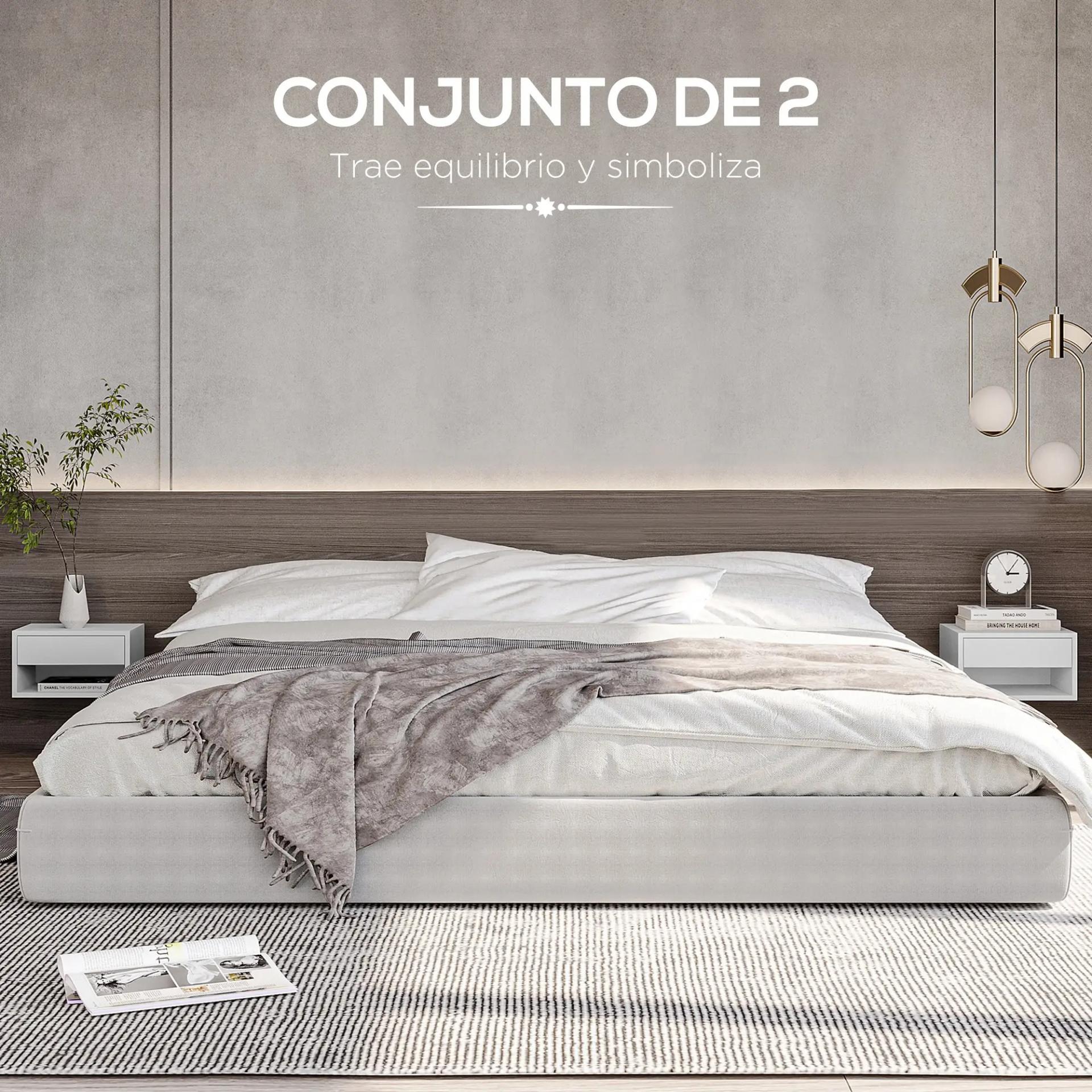 SET DE 2 MESILLAS DE NOCHE: Este conjunto de mesitas de noche flotantes ofrece un diseño elegante y actual, ideal para combinar con diversos estilos de decoración en tu dormitorio